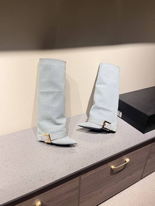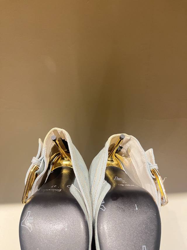 d Balmian gold stiletto decorated square-toed high-heeled boots The first feeling when seeing this pair of shoes is amazing. Whether it is its material selection or her strap design, each finished product is like a work of art
