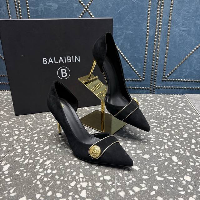 Balmain's latest runway fashion high-heeled shoes. Balmain, founded in 1945 by French fashion designer Pierre Balmain, is a long-established bespoke fashion house, ranking alongside [other brands] as one of the three giants of post-World War II bespoke fashion. This style features exquisite handcraftsmanship and unique fashion elements. Materials: Sheepskin, metal, cowhide. Lining: Cowhide. Heel height: 9.5cm. Outsole: Genuine leather. Buckle: Original buckle molded. Sizes: 36-42 (40, 41, 42 are custom-made and non-refundable). Price: [Price not provided].