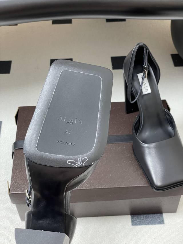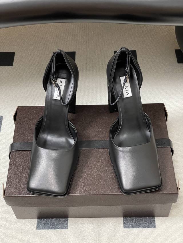 2025 Early Autumn New Arrival Alaia Minimalist Style Stylish Chunky Heel Square Toe Single Shoes High Heel Hollow Sandals