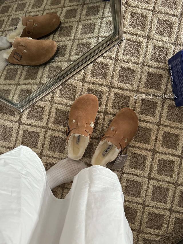 Japanese streetwear style Birkenstock collaboration wool slippers for early winter