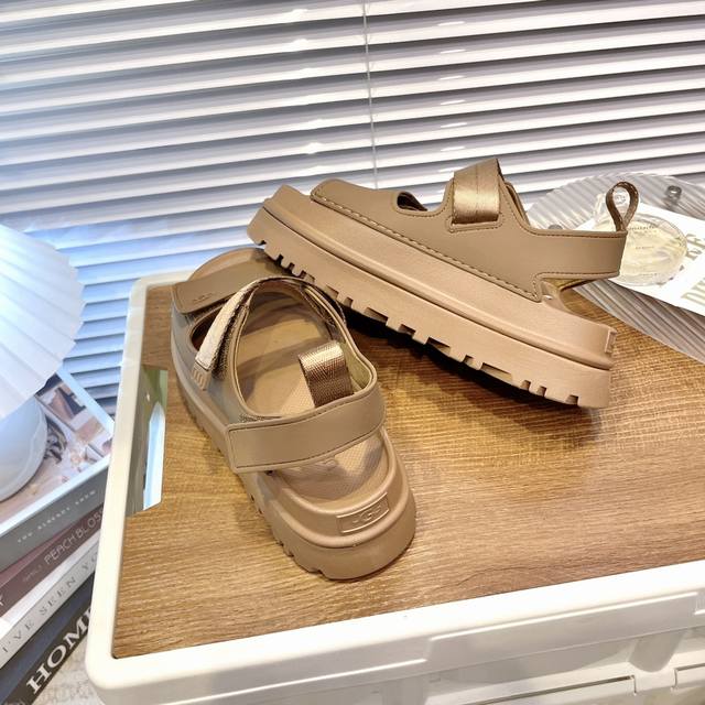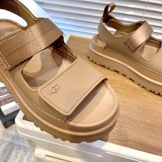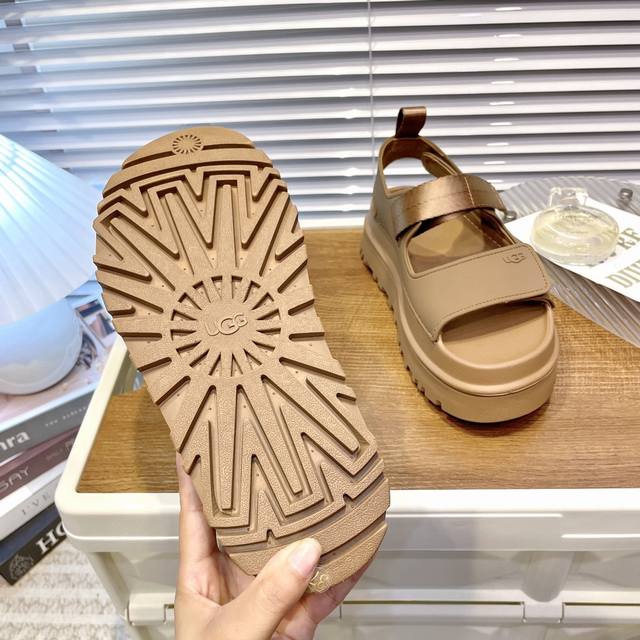 Ugg's dazzling gold Velcro platform sandals, dopamine color, the strap design fits the instep better and is full of vitality, really super girly~ fall in love at first sight, Eva sole, soft and comfortable, versatile, instantly make your legs look longer, can walk in water and DIY. Celebrity style, recommended by many bloggers, a must-have summer item