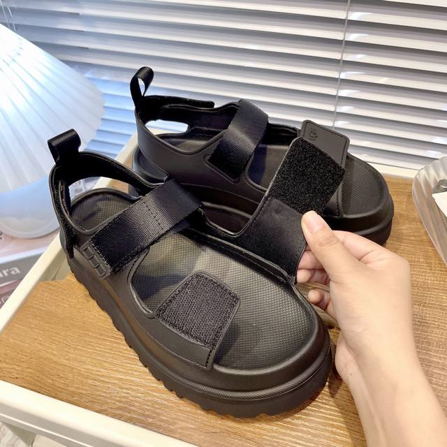 Ugg launched dazzling gold Velcro platform sandals, dopamine color, the strap design fits the instep better and is full of vitality, really super girly~ fall in love at first sight, Eva sole, soft and comfortable, versatile, instantly make your legs look longer, can walk in water and DIY. Celebrity style, recommended by many bloggers, a must-have summer item