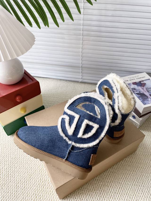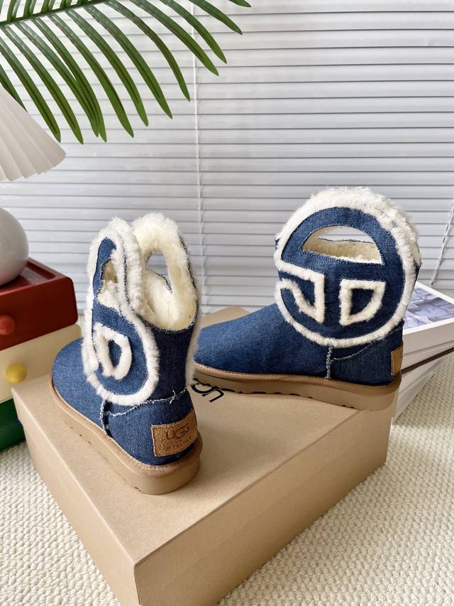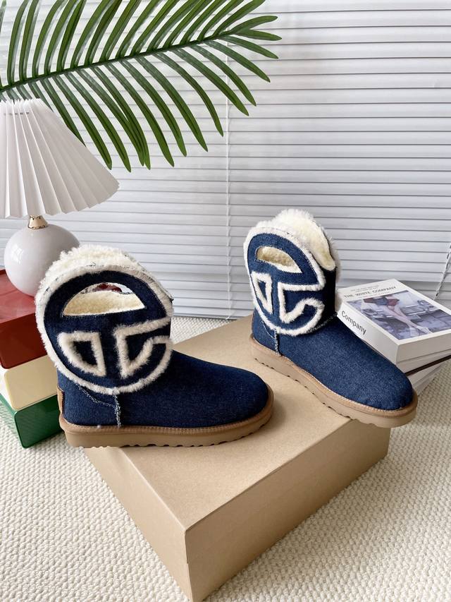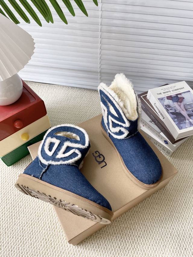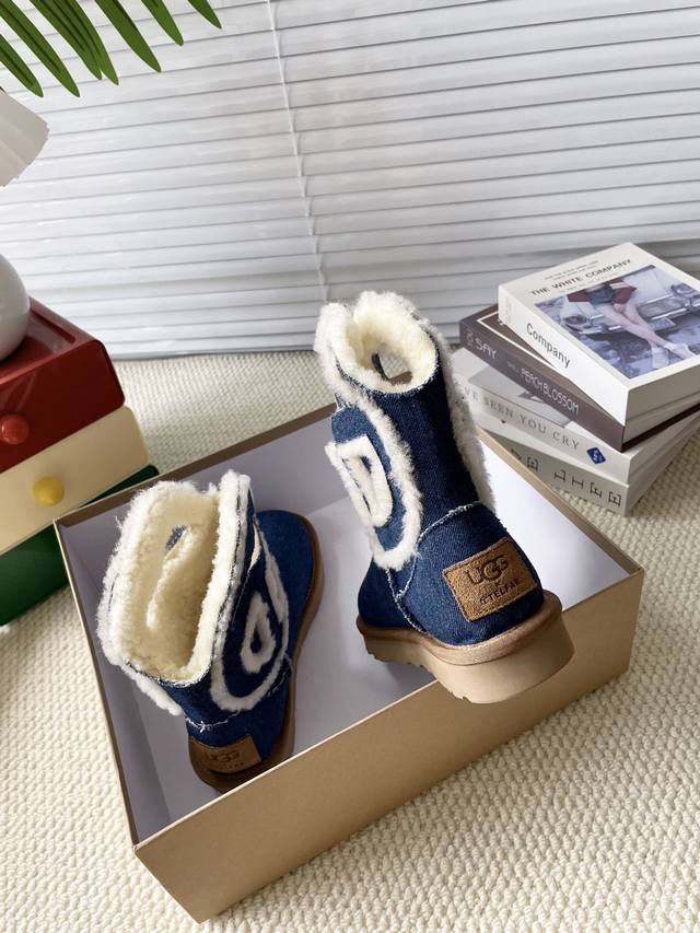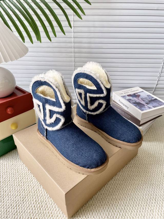 Blue Denim Snow Boots, Autumn/Winter Style, Comfortable Flat Solid Color Round Toe, Fashionable Casual Ankle Boots, Cowhide Suede Lining, Genuine Wool, Colors: Black Leather, Black, Chestnut, Denim, Sizes 35-40, Size 40 Custom Made.