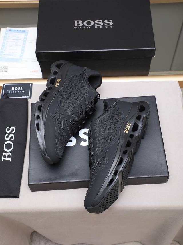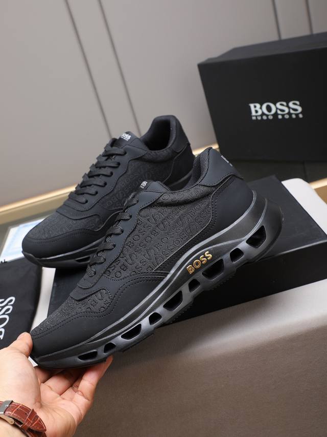 Boss New Luxury Trendy Sneakers: Dynamic appearance, minimalist design, crafted with imported epoxy resin and special materials for breathability and comfort. Features a brand logo on the tongue, a sweat-wicking mesh lining, and a technologically advanced contrasting sole. A trendy outdoor and urban sports style! Sizes: 38-44, 45 (custom sizes available).