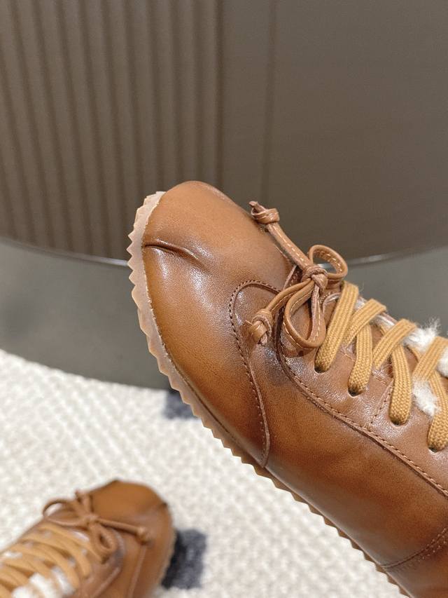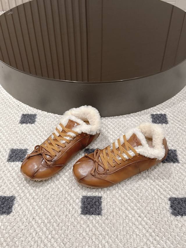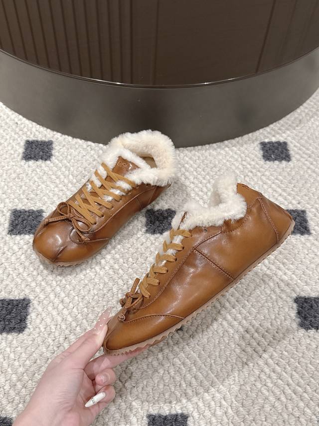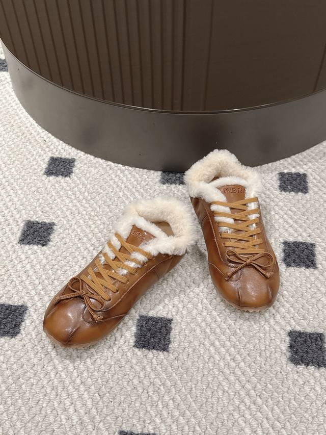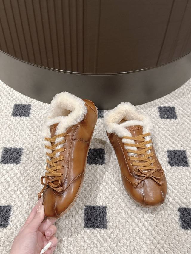 Brown waxed leather, leather lining, wool lining. Sizes 35-40. Size 41 is custom-made. DDD The 2025 hottest Abra ballet flat wool training shoes are now available! DDD These shoes are simply a perfect blend of fashion and comfort