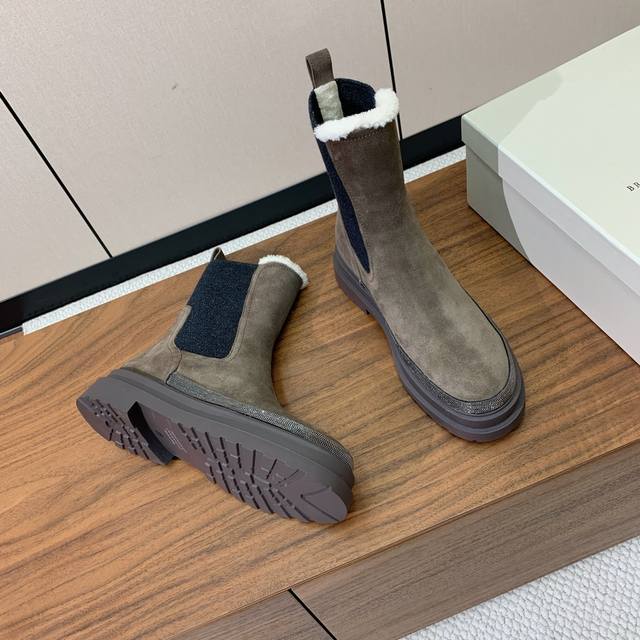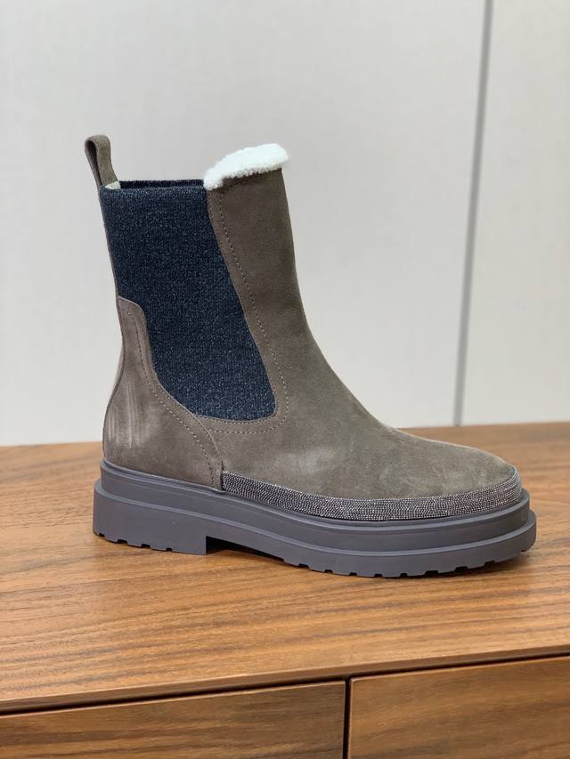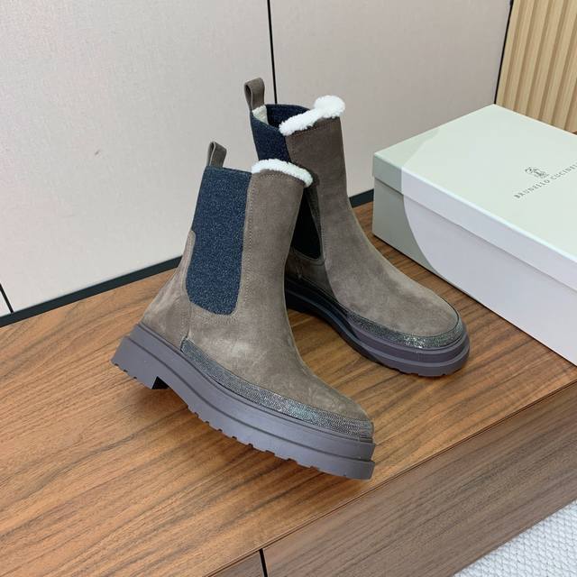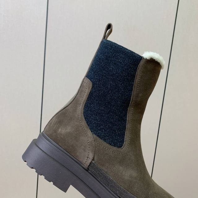 Brunell* Cucinell* Ankle Boots. Upper: cowhide suede, leather. Wool lining, original mold hardware, rubber outsole. Sizes: 35-42. Sizes 35, 41, and 42 are custom-made and non-refundable.