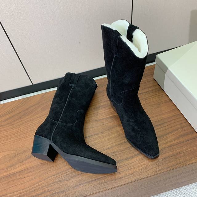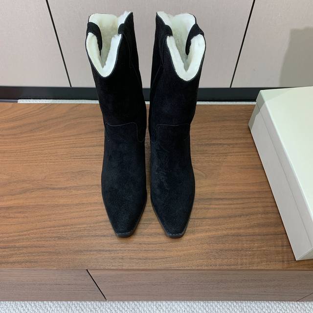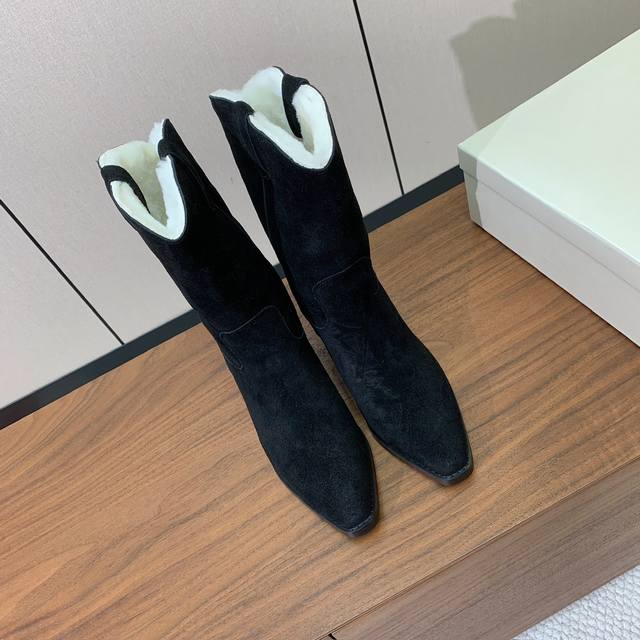 Brunell* Cucinell* Chunky Heel Mid-Length Boots with Fleece Lining. Upper: cow suede; lining: wool; original mold hardware; rubber outsole. Sizes: 35-41. Sizes 35 and 41 are custom-made and non-refundable. Wholesale: [Not specified]