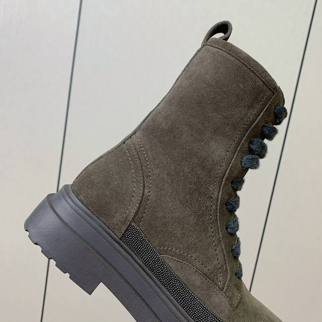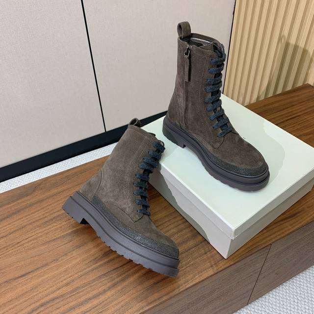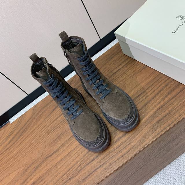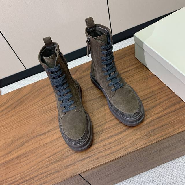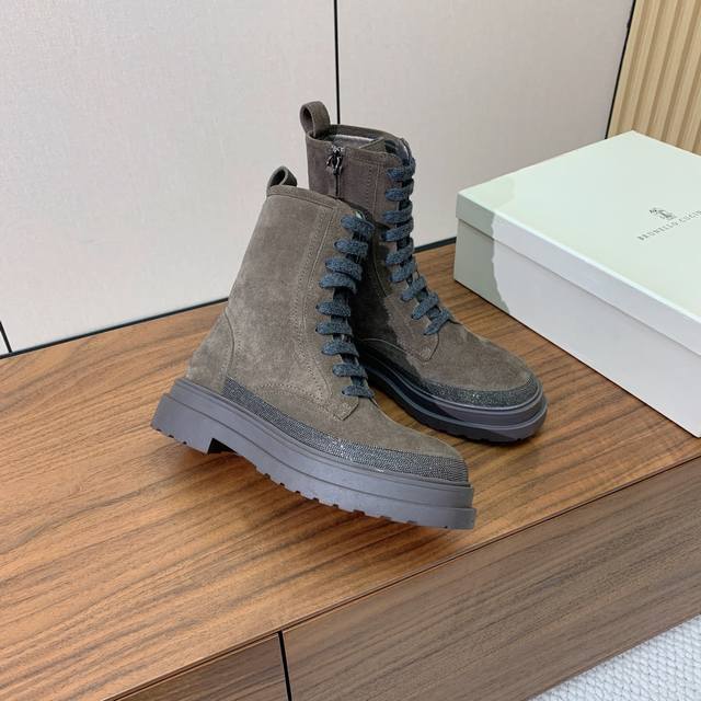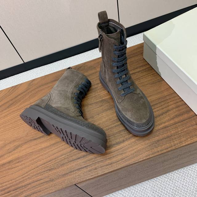 Brunell* Cucinell* New Lace-up Ankle Boots. Upper: cowhide suede, cowhide leather. Sheepskin lining, original mold hardware, rubber outsole. Sizes: 35-42. Sizes 35, 41, and 42 are custom-made and non-refundable/non-exchangeable.