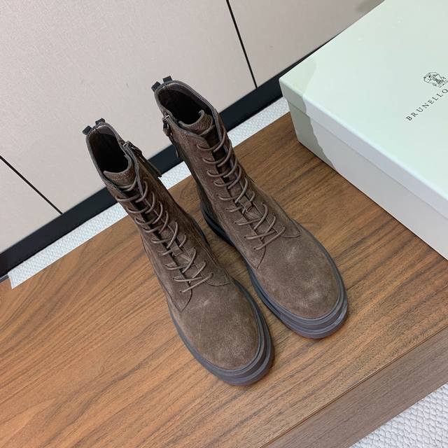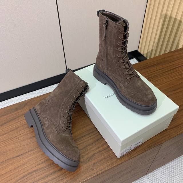 Brunell* Cucinell* New Lace-up Ankle Boots. Upper: cowhide suede, leather. Lining: sheepskin. Hardware: original mold design. Outsole: rubber. Sizes: 35-42. Sizes 35, 41, and 42 are custom-made and non-refundable.