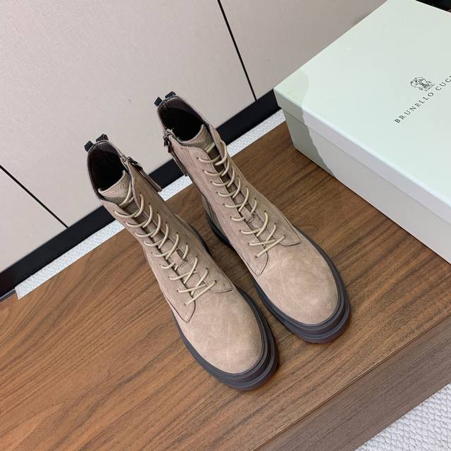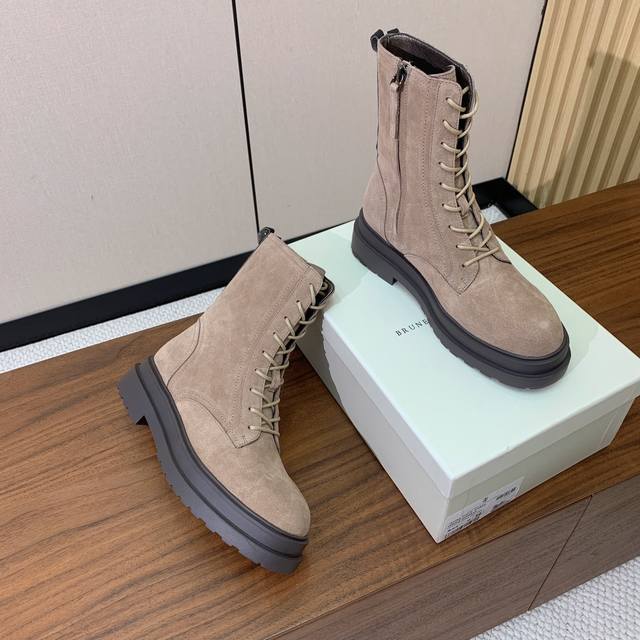 Brunell* Cucinell* New Lace-up Ankle Boots. Upper: cowhide suede, leather. Lining: sheepskin. Hardware: original mold design. Outsole: rubber. Sizes: 35-42. Sizes 35, 41, and 42 are custom-made and non-refundable/non-exchangeable.