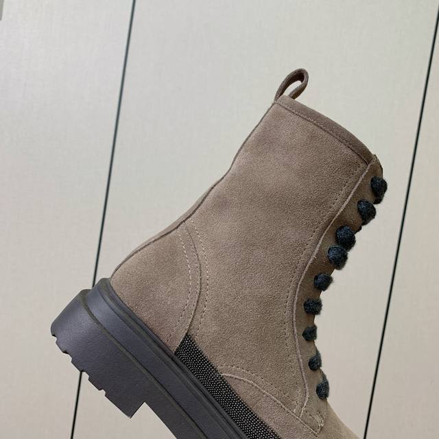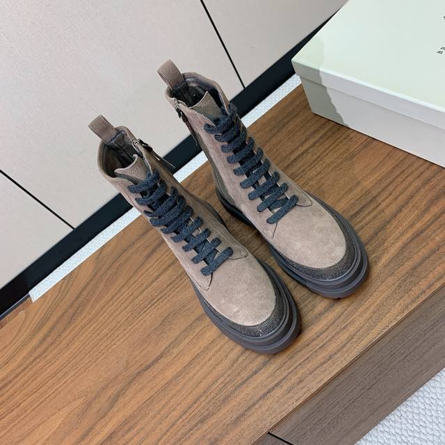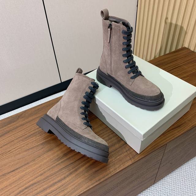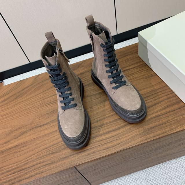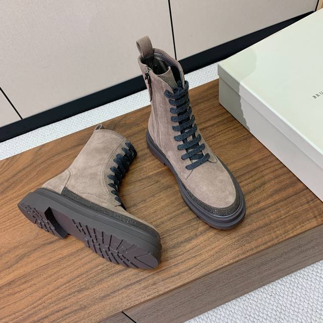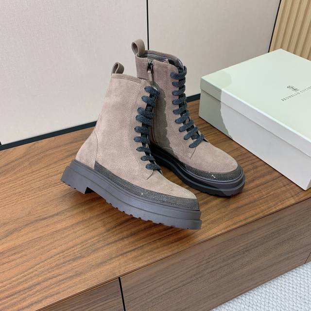 Brunell* Cucinell* New Lace-up Ankle Boots. Upper: cowhide suede, leather. Lining: sheepskin. Hardware: original mold design. Outsole: rubber. Sizes: 35-42. Sizes 35, 41, and 42 are custom-made and non-refundable/non-exchangeable.