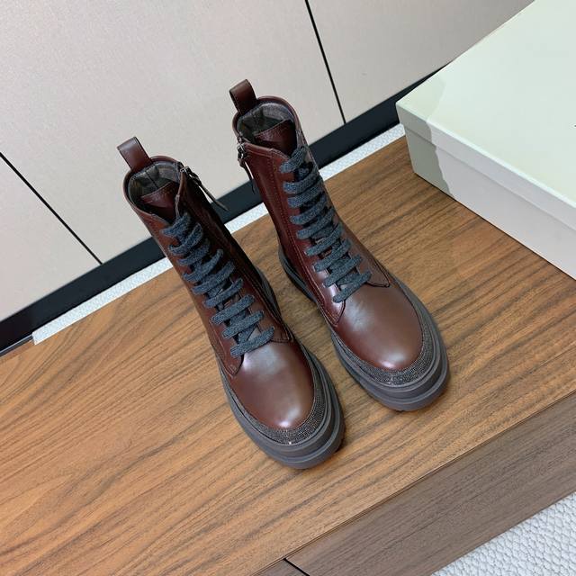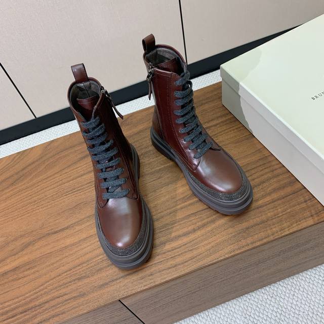 Brunell* Cucinell* New Lace-up Ankle Boots. Upper: cowhide suede, leather. Lining: sheepskin. Hardware: original mold design. Outsole: rubber. Sizes: 35-42. Sizes 35, 41, and 42 are custom-made and non-refundable/non-exchangeable.