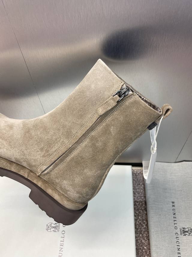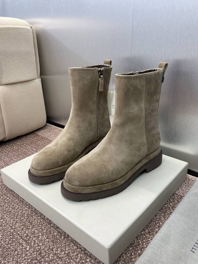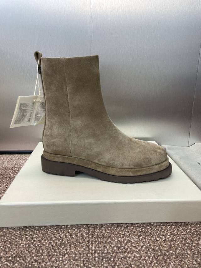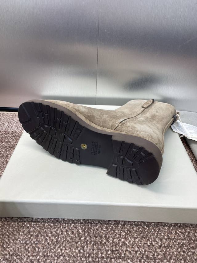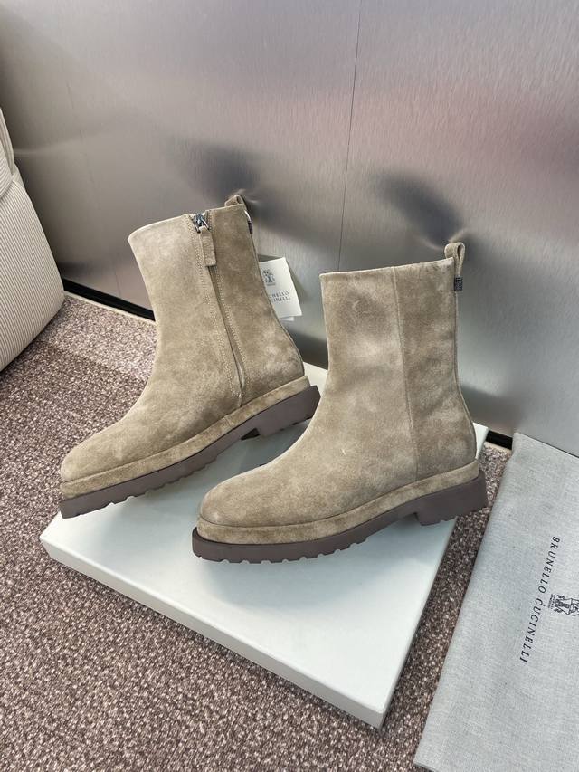 Brunello Cucineli 2025 Autumn/Winter New Women's Ankle Boots Bc Thick-soled Low Heel Round Toe Side Zipper Motorcycle Knight Military Boots