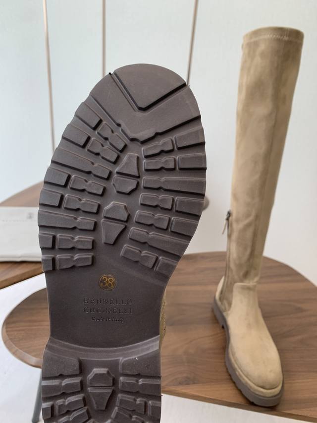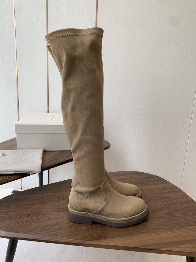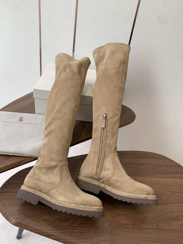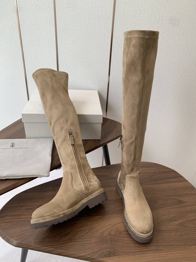 Brunello Cucinelli Top-Tier Original Autumn/Winter BC Leather High-Top Thick-Soled Elastic Boots. Purchased by