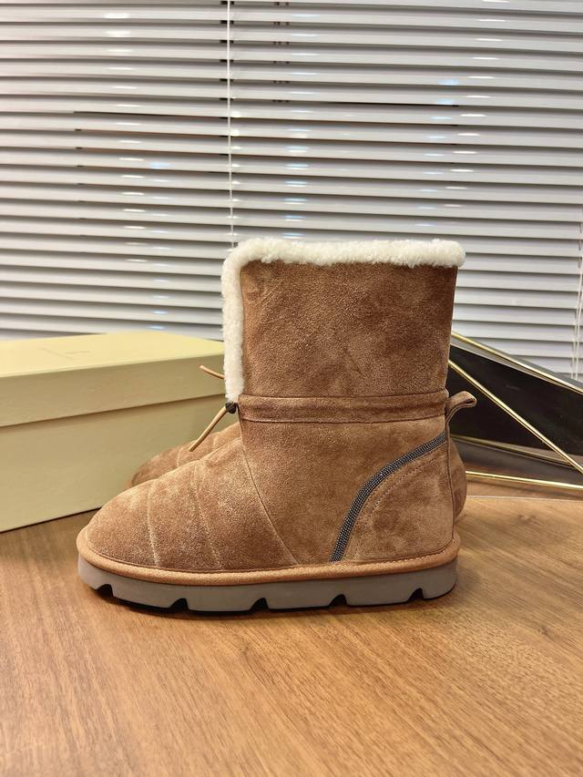 Brunello Cucinelli Winter New Snow Boots (Retailer Level) Lining: Imported Australian lambswool lining Outsole: Custom-made Italian high-density original outsole Upper: Imported high-gloss material Sizes: 35-41, 40-41 (Made to order, no returns or exchanges)