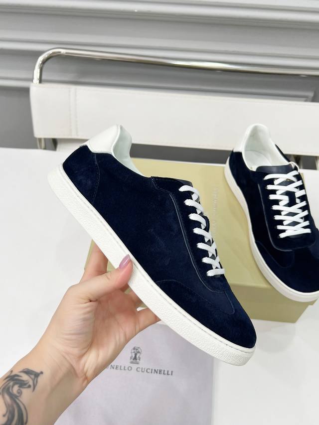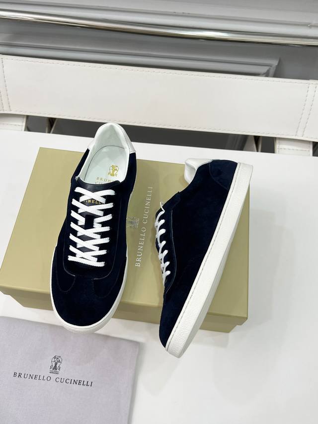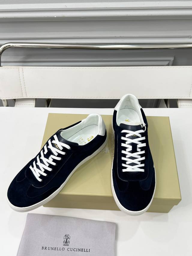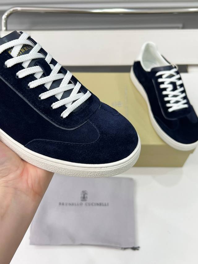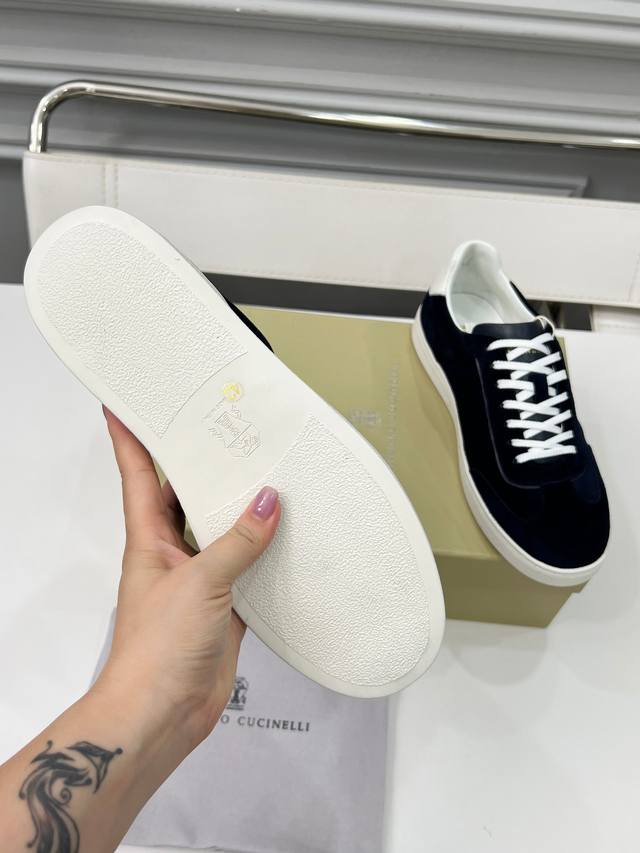 Brunello Cucinelli's premium, all-match, all-season casual shoe is now available. Made with imported cashmere and calfskin, the shoe features a water-dyed, breathable, sweat-wicking cowhide lining and an ultra-lightweight, one-to-one, non-slip sole. This pair allows you to express your style in comfort. Sizes: 39-46.