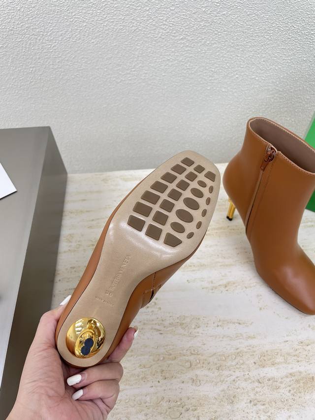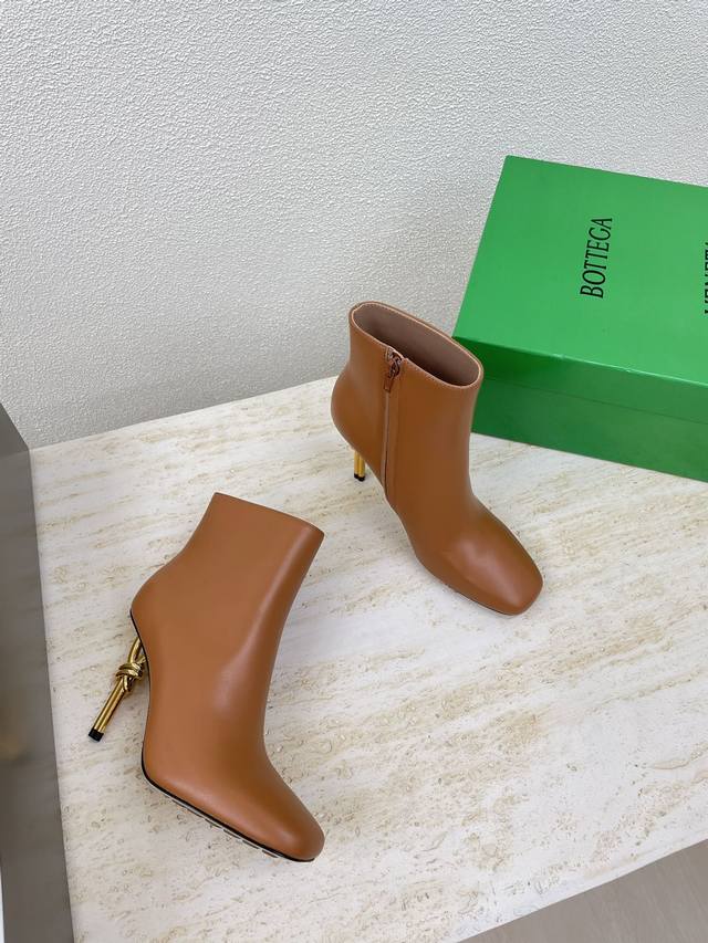 Bv Knot Series Metal Heel Ankle Boots Brown Top Layer Calfskin These square-toe