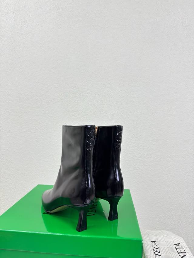 Bv Women's Sofia Comfortable Ankle Boots DDD 7cm Heel in Calfskin Ddd Hand-woven Back Opening Decoration Ddd Super Soft and Comfortable DDD High-Quality Black Calfskin Family Woven Series DDD Round Toe, Essential for Commuters Bv Early Autumn Collection, So Beautiful Ddd Elegant Materials Used in Footwear, Intellectual, Elegant, and Capable Ddd Full of High-End Design, So Beautiful