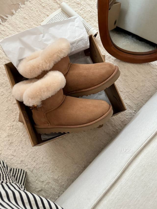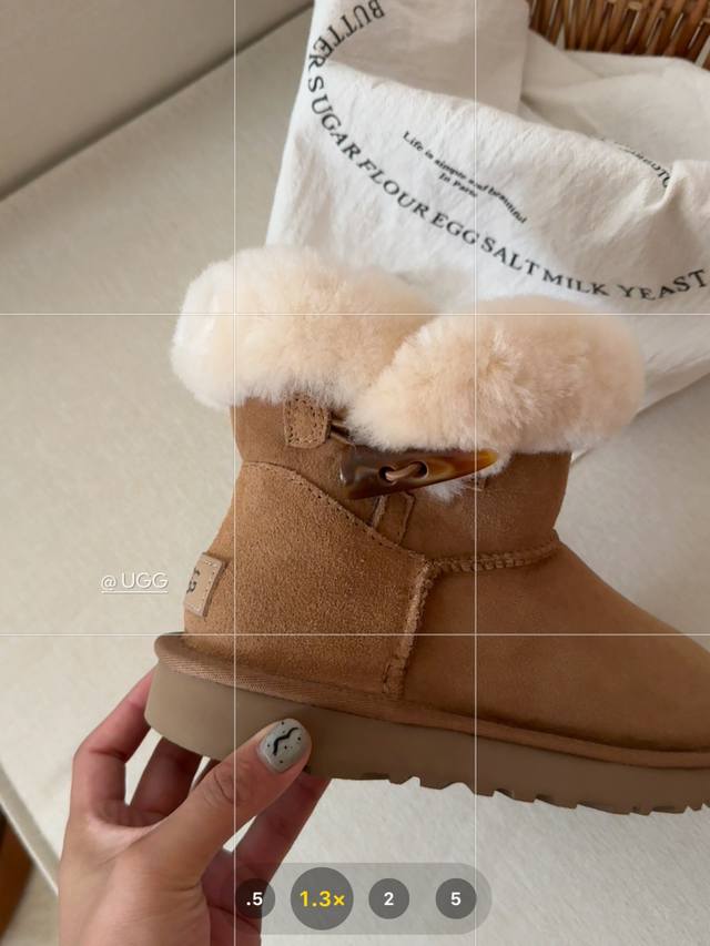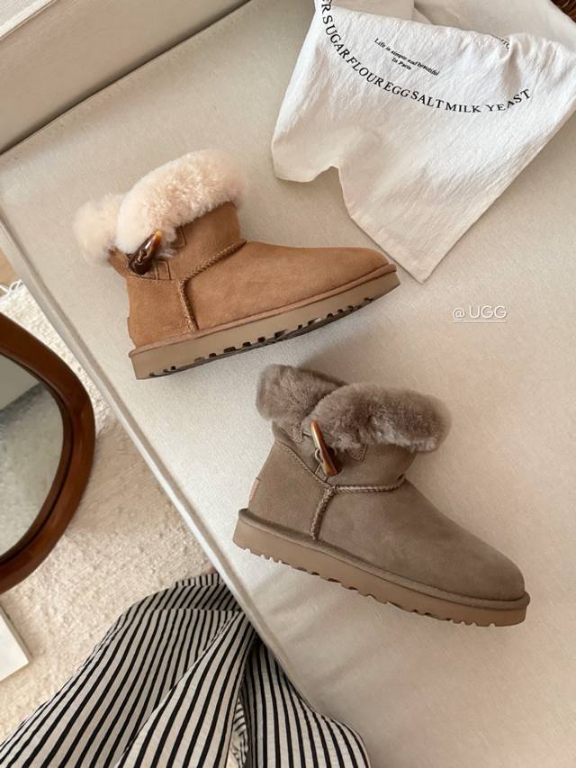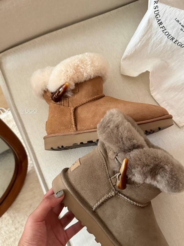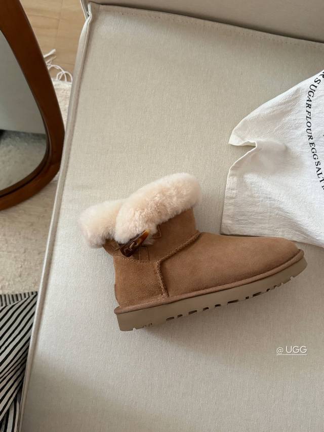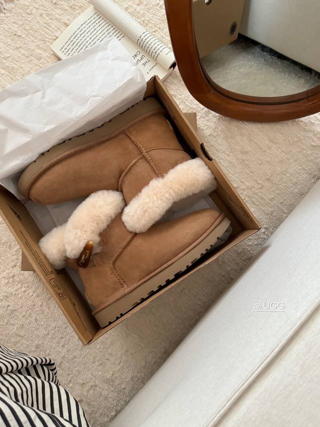 Casual Horn Buckle Leather Shearling Ankle Boots ~ Made with high-quality Grade A Longfeng leather shearling. Features a turned-up fur collar and horn buckle detailing. Stylish and versatile. Size: 35-40