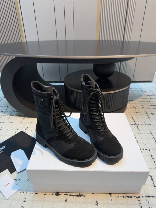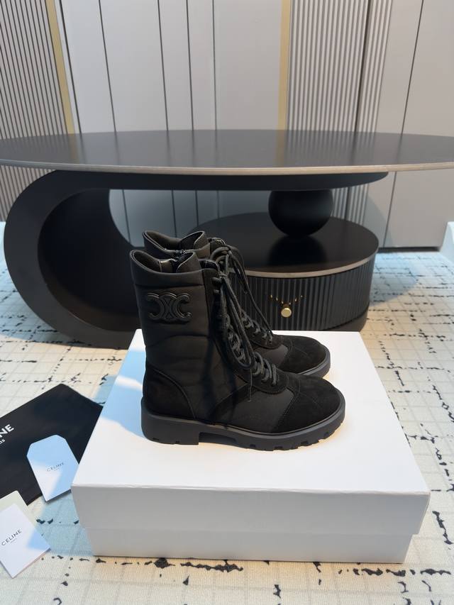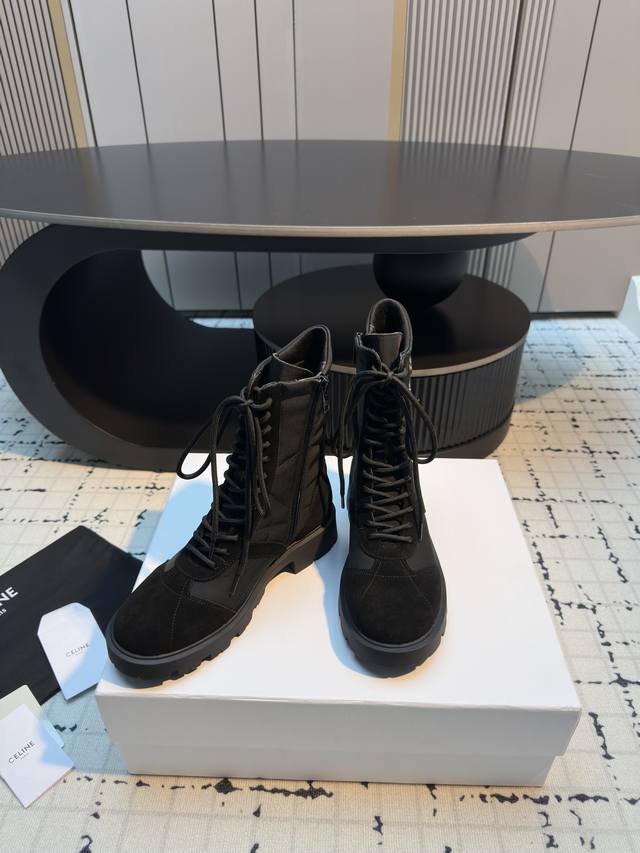 mid-calf boots with adjustable laces to fit different foot shapes; thick-soled design, both to increase height and modify the leg shape, making the leg lines more slender. The rubber outsole has strong grip and is wear-resistant, comfortable and versatile for daily wear.
