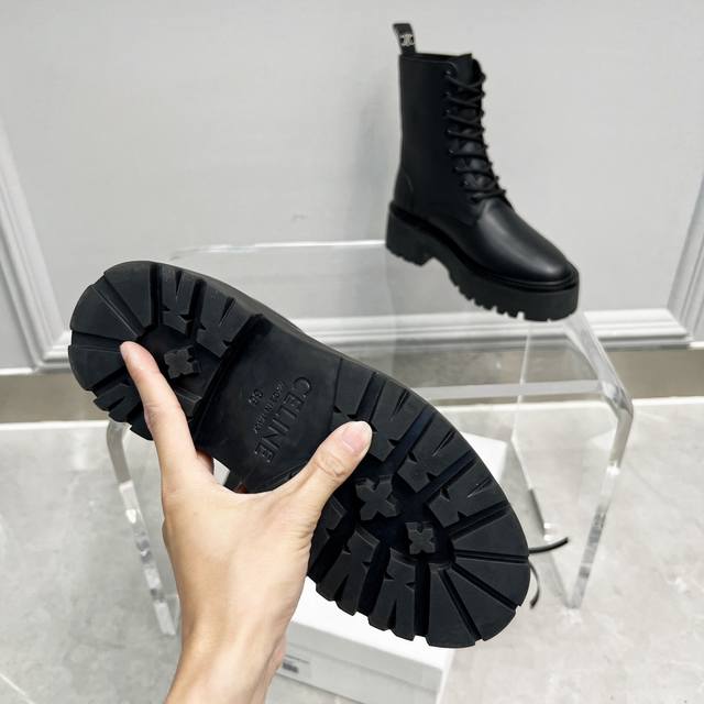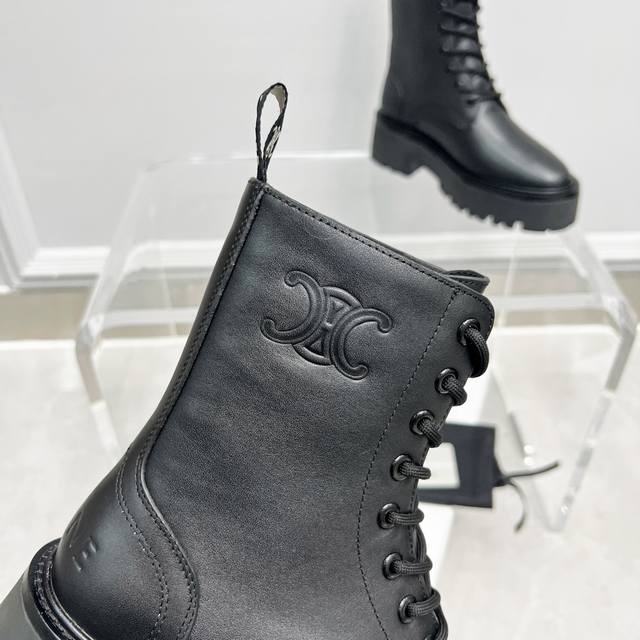 The latest runway style, lace-up Martin boots with a low-key, minimalist motorcycle style. Slimming, lightweight, and versatile.