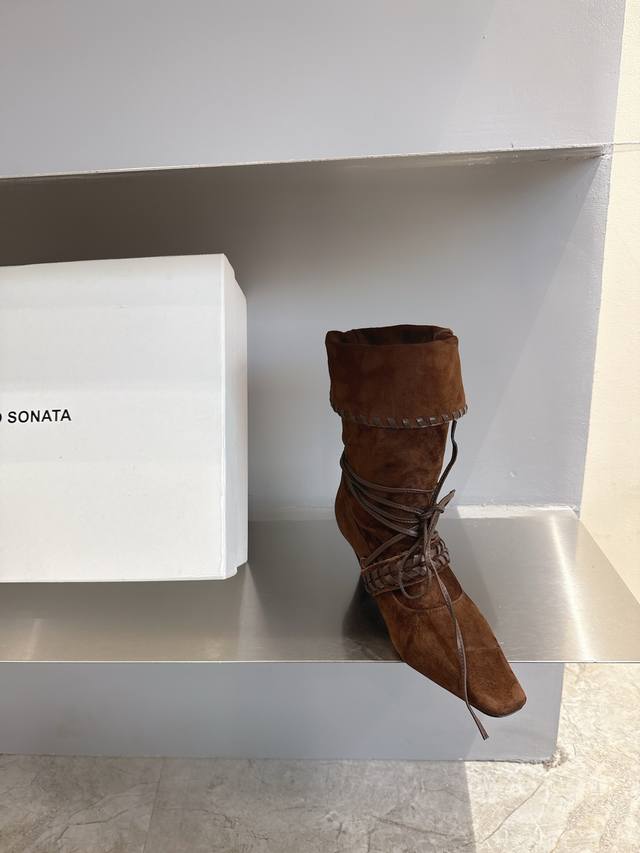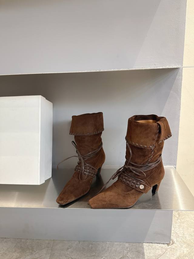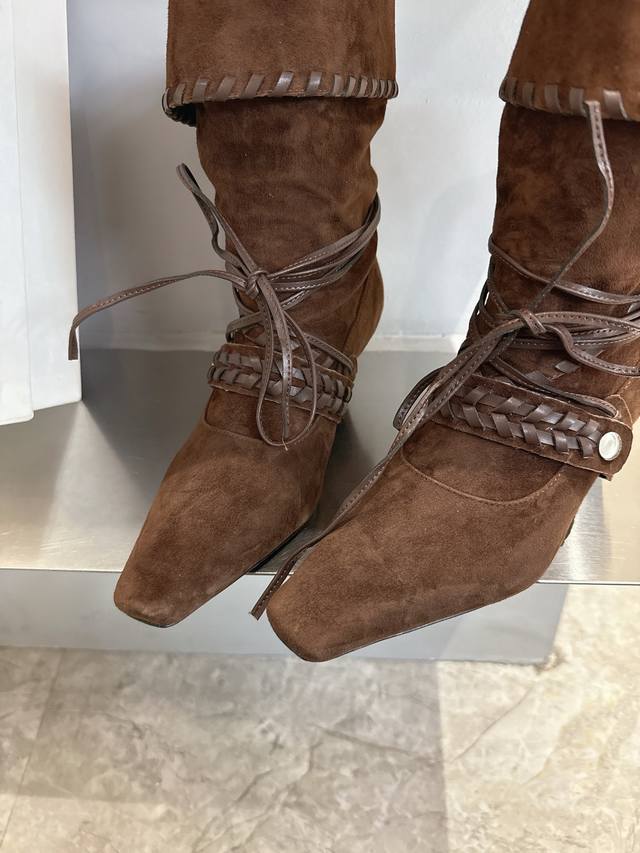 Cello Sonat*25Aw New Nomadic Retro Suede Woven Mid-Length Boots