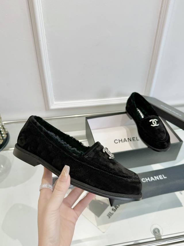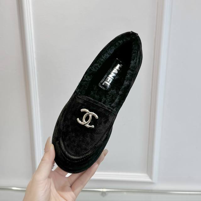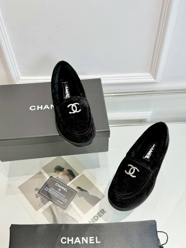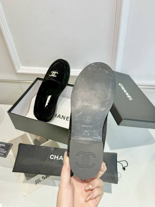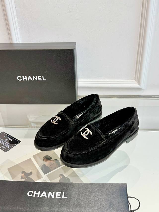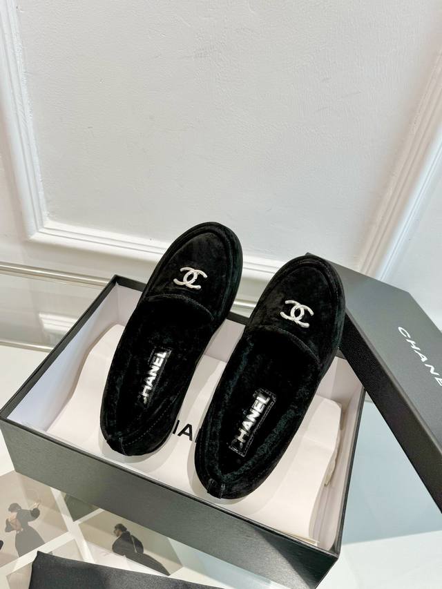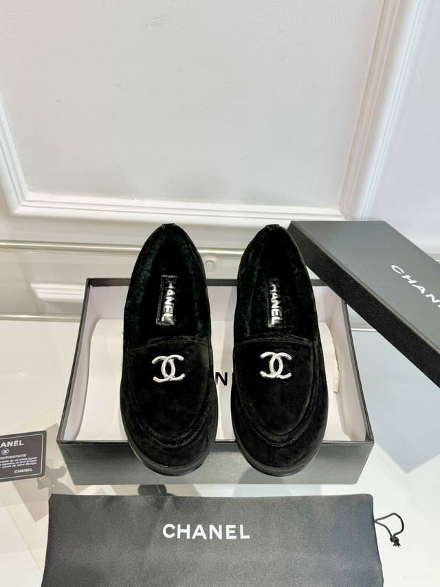 Ch Chanel** Winter Double C Suede Flat Shoes. These flat shoes feature a suede upper, premium wool lining, and original-molded hardware, exuding an elegant and sophisticated feel. A top choice for winter, they are warm and stylish, pairing perfectly with both trousers and skirts. Comparison with the original: Leather, sole, craftsmanship, and hardware all match perfectly. Upper Material: Suede Lining: Wool Sole: Rubber Size: 35-41. Sizes 40 and 41 are custom-made and non-refundable.