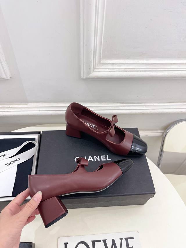 2025 Autumn/Winter New Arrival Classic Runway Style Chanel Double C Bow Mary Jane Chunky Heel Shoes Series New Arrival