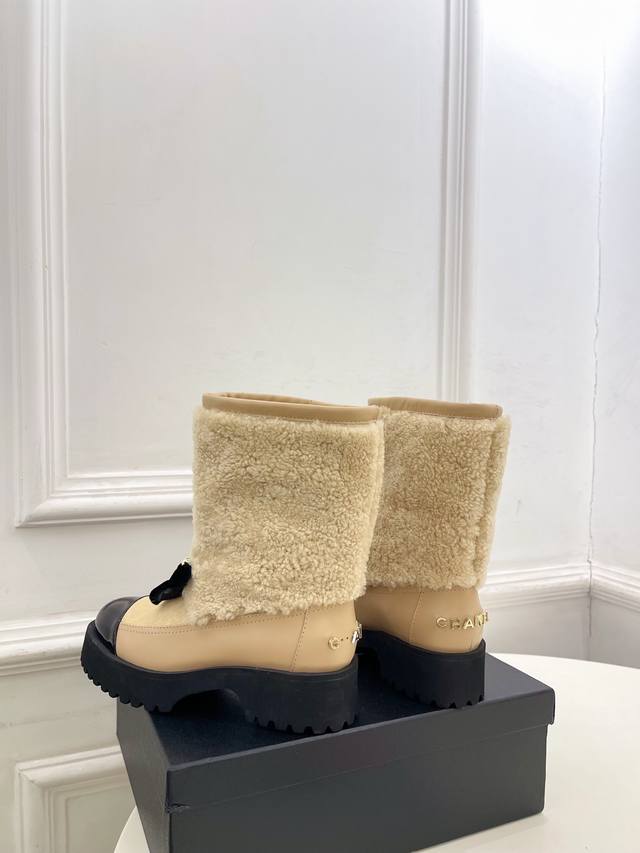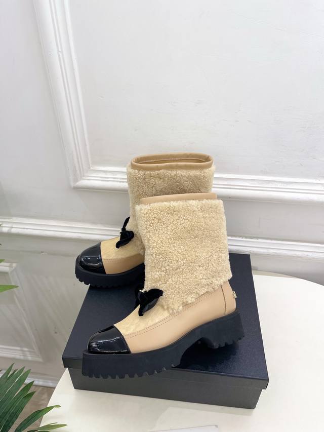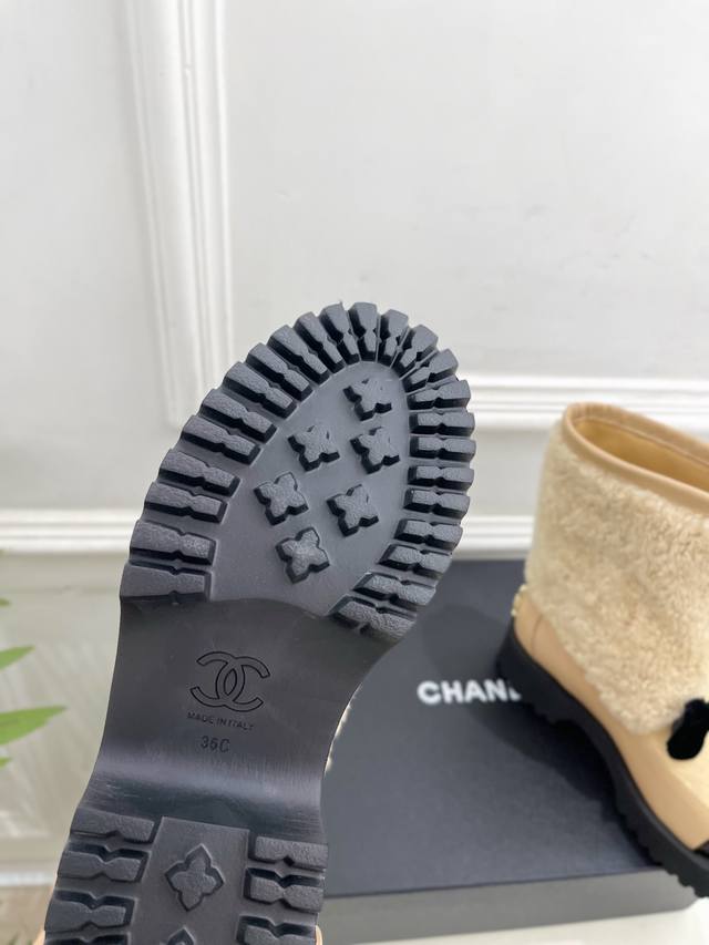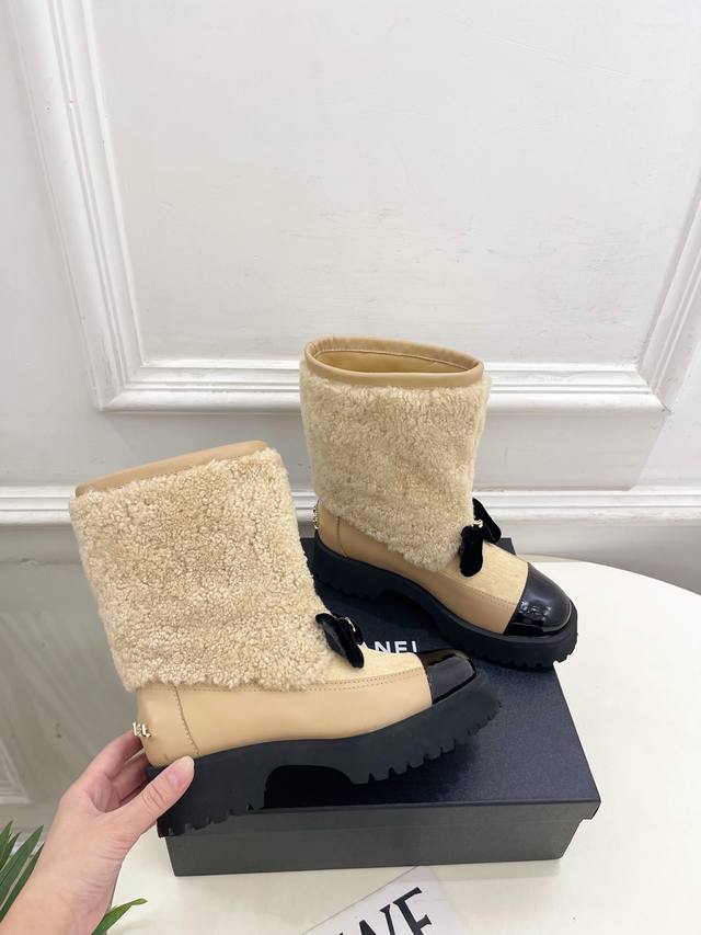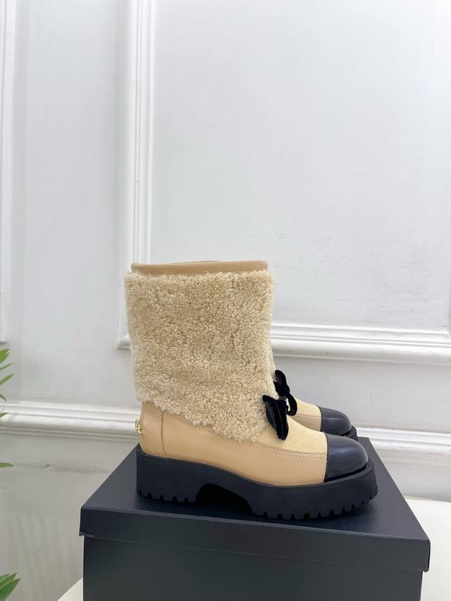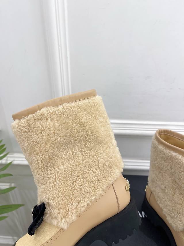 Chanel 25 DDD 2025 Autumn/Winter New Arrival: Classic Runway Style Chanel Double C Bow Color-Blocked Furry Ankle Boots - New Arrival! DDD A must-have in the fashion world, these boots showcase exquisite minimalism and timeless classic elements, presenting a unique and stylish look. Absolutely stunning! A summer essential! DDD T DDD Upper: High-quality custom-made original lambskin and wool trim DDD Lining: Imported silk and lambskin lining DDD Outsole: Original mold-made custom non-slip outsole DDD Heel Height: 4.5cm DDD Sizes: 35-39, 40, 41 (Custom orders are non-refundable and non-exchangeable) DDD Factory Price (approx.): Ankle boots, long boots DDD
