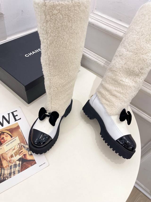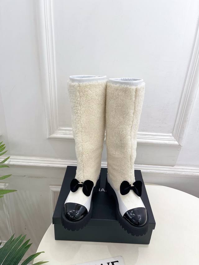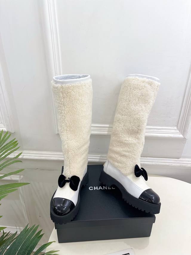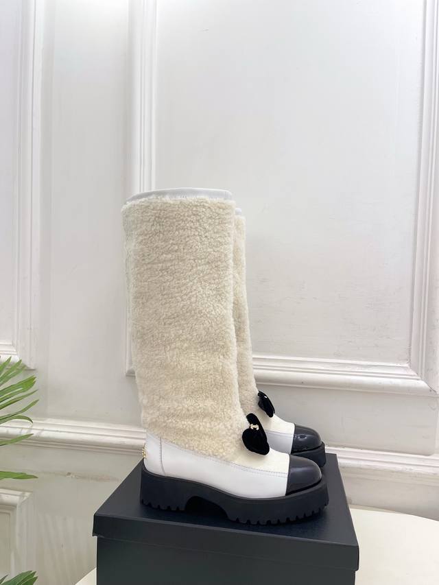 Chanel 25 DDD 2025 Autumn/Winter New Arrival: Classic Runway Style Chanel Double C Bow Color-Blocked Furry Long Boots - New Arrival! DDD A must-have in the fashion world, these boots showcase exquisite minimalism and timeless classic elements, presenting a unique and stylish look. Absolutely stunning! A summer essential! DDD T DDD Upper: High-quality custom-made original lambskin and wool trim DDD Lining: Imported silk and lambskin lining DDD Outsole: Original mold-made custom non-slip outsole DDD Heel height: 4.5cm DDD Sizes: 35-39, 40-41 (Custom orders are non-refundable and non-exchangeable) DDD Short boots, long boots DDD