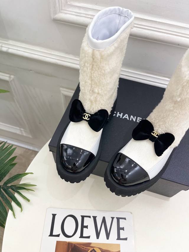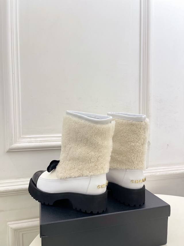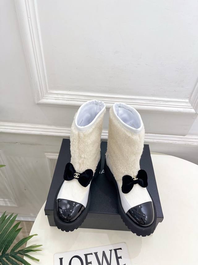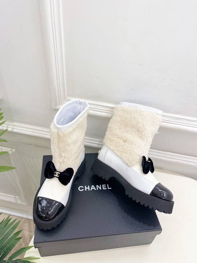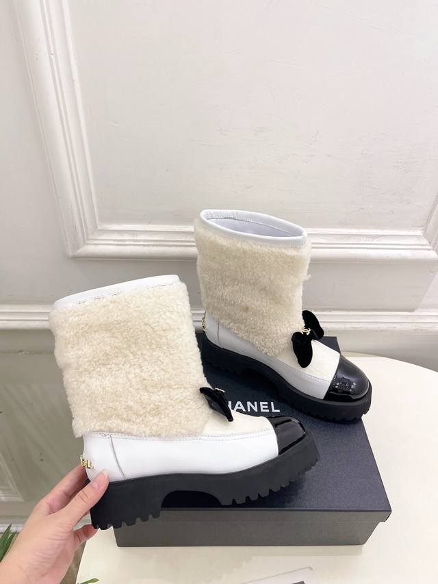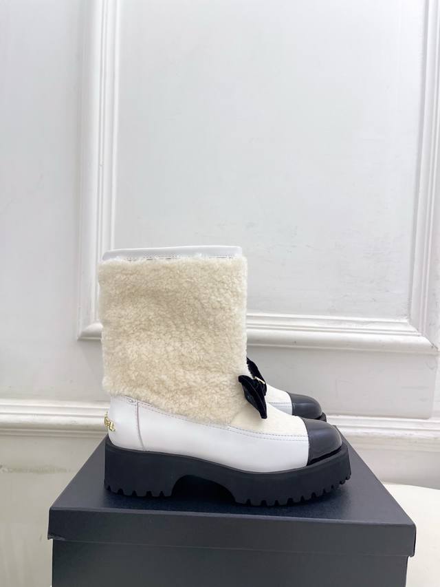 Chanel 25 DDD 2025 Autumn/Winter New Arrival: Classic Runway Style Chanel Double C Bow Color-Blocked Furry Ankle Boots - New Arrival! DDD A must-have in the fashion world, these boots showcase exquisite minimalism and timeless classic elements, presenting a unique and stylish look. Absolutely stunning! A summer essential! DDD T DDD Upper: High-quality custom-made original lambskin and wool trim DDD Lining: Imported silk and lambskin lining DDD Outsole: Original mold-made custom non-slip outsole DDD Heel height: 4.5cm DDD Sizes: 35-39, 40, 41 (Custom orders are non-refundable and non-exchangeable) DDD Ankle Boots, Long Boots DDD