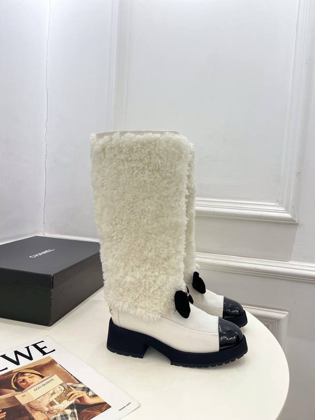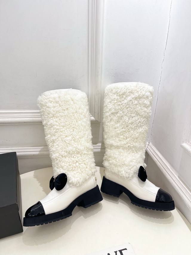 Chanel 25 DDD 2025 Autumn/Winter New Arrival: Classic Runway Style Chanel Double C Bow Color-Blocked Platform Wool Boots Series. A must-have for the fashion world, these boots showcase exquisite minimalism and timeless classic elements, presenting a unique and stylish look. A summer essential! DDD T DDD Upper: High-quality custom-made original lambskin and wool patchwork. DDD Lining: Imported silk and lambskin lining. DDD Outsole: Original mold-made custom non-slip outsole. DDD Heel Height: 5cm. DDD Sizes: 35-39, 40-41. Custom orders are non-refundable and non-exchangeable. DDD Short boots, long boots. DDD