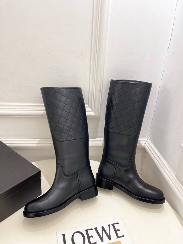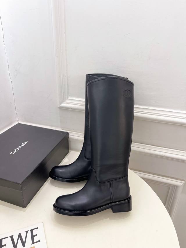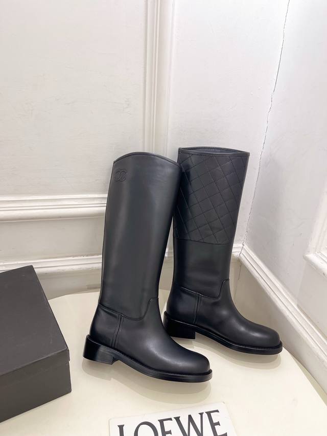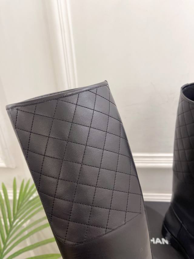 2025 Fall/Winter Runway New Arrival: Chanel Classic Diamond Pattern Double C Riding Boots, High-Top Boot Series. A must-have in the fashion world, these boots showcase meticulous, minimalist, and timeless classic elements, presenting a unique and stylish look. Absolutely stunning! A summer essential!