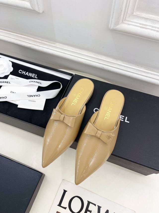 2025 Spring and Summer New Products Chanel Pointed Toe Bow Half Slippers Series New