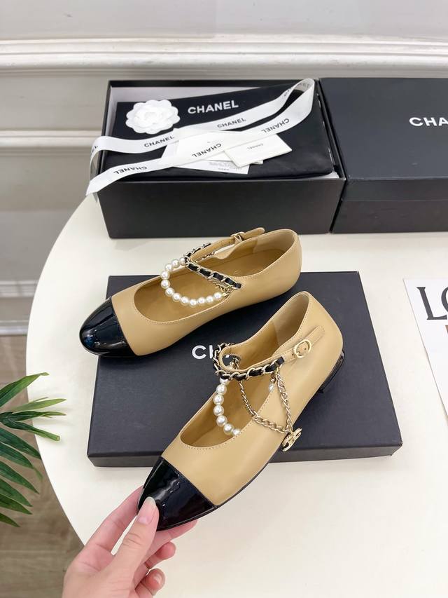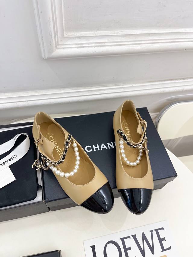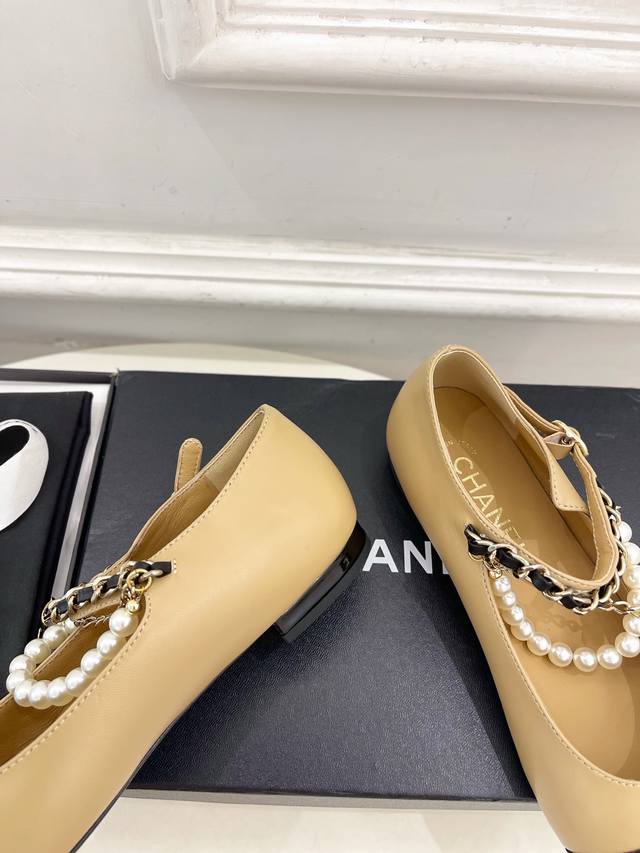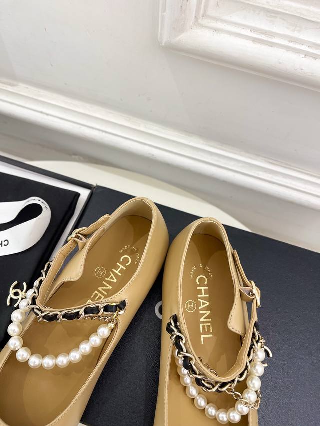2025 Spring/Summer New Arrival Classic Runway Style Chanel Double C Pearl Chain Mary Jane Shoes Series New Arrival