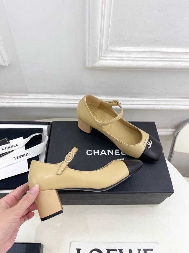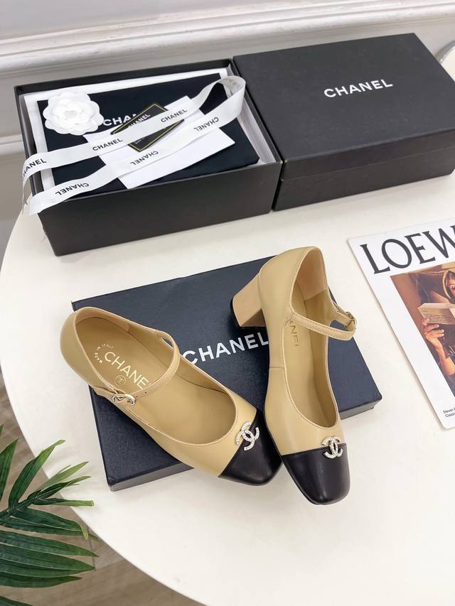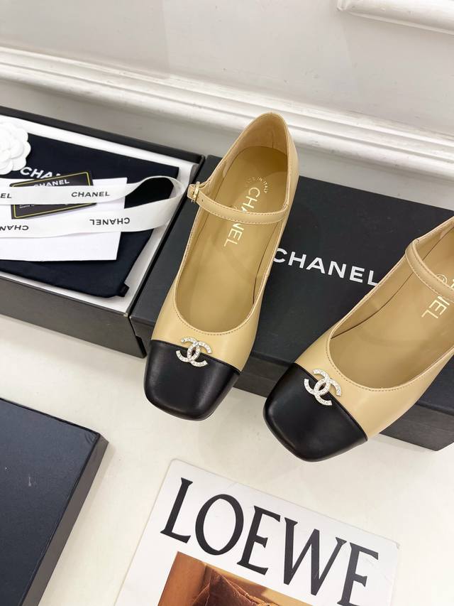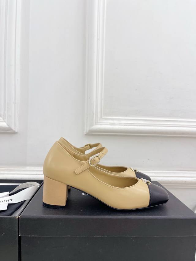 2025 Spring/Summer New Arrival Classic Runway Style Chanel Double C Rhinestone Square Toe Chunky Heel Mary Jane Shoes Series New Arrival