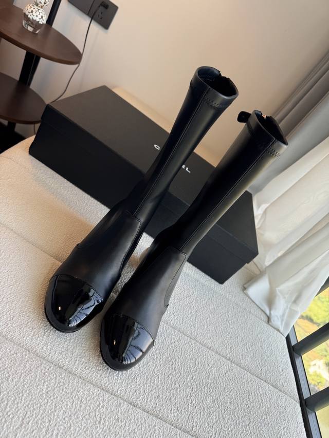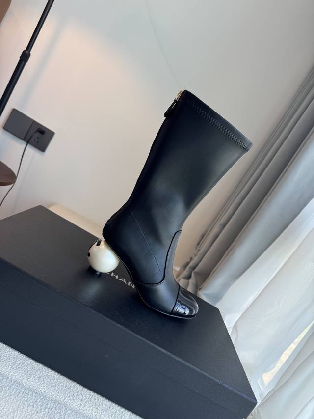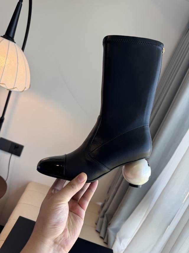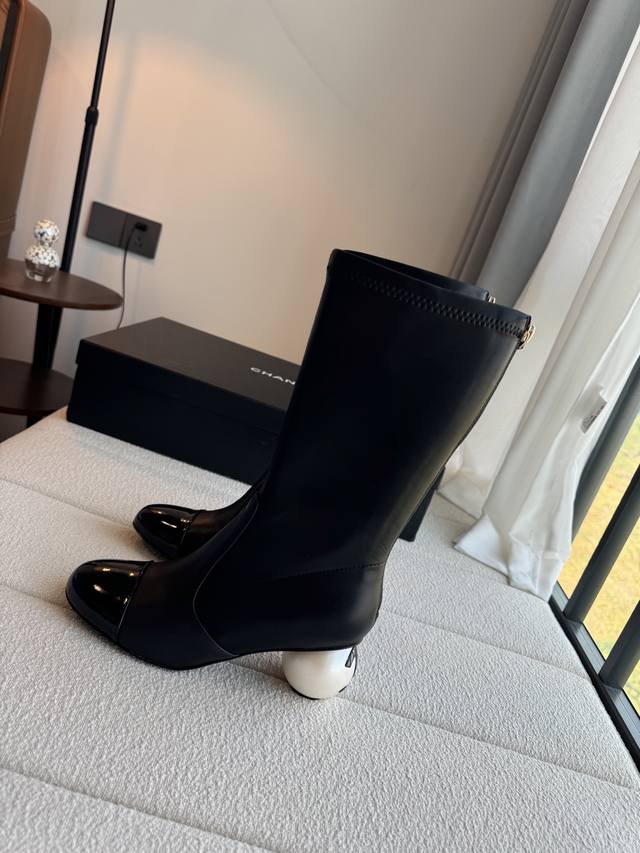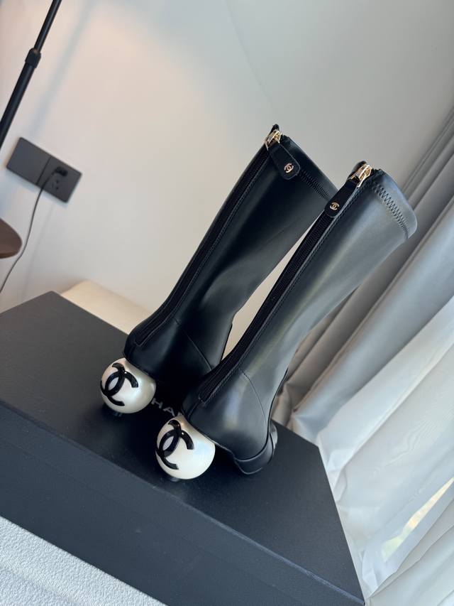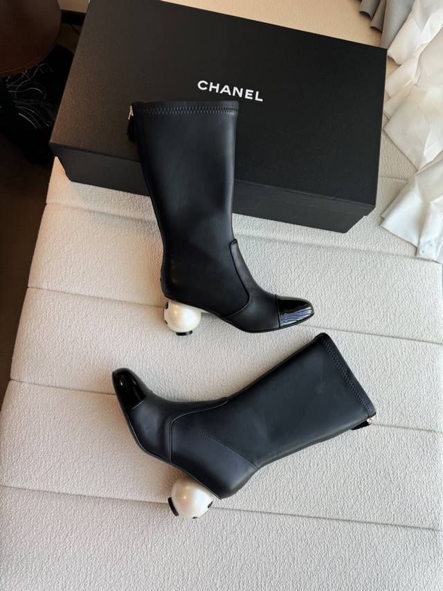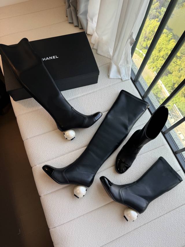 Chanel Ss New Style Over-the-Knee Elastic Boots with Large Pearl Heel, Mid-Wheel Boots, Single Shoe Series. Extremely rare and highly recommended, the best quality on the market! 100% Original 1:1 Custom Made. Material: Calfskin; Lining: Sheepskin; Outsole: Imported Genuine Leather; Heel Height: 6.5cm; Sizes: 35-39 (34, 40, 41). Custom orders are non-refundable and non-exchangeable.