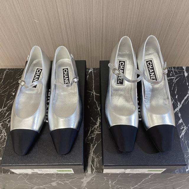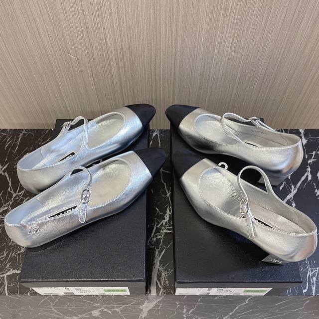 chanel~~Classic all-match ballet flats, Mary Jane women's shoes, little silver shoes