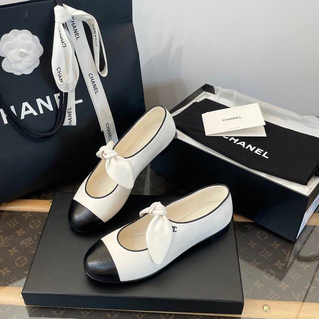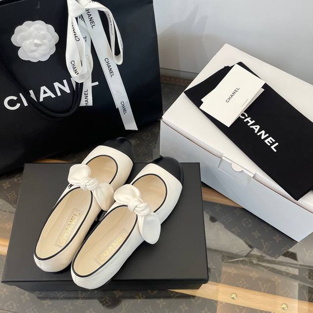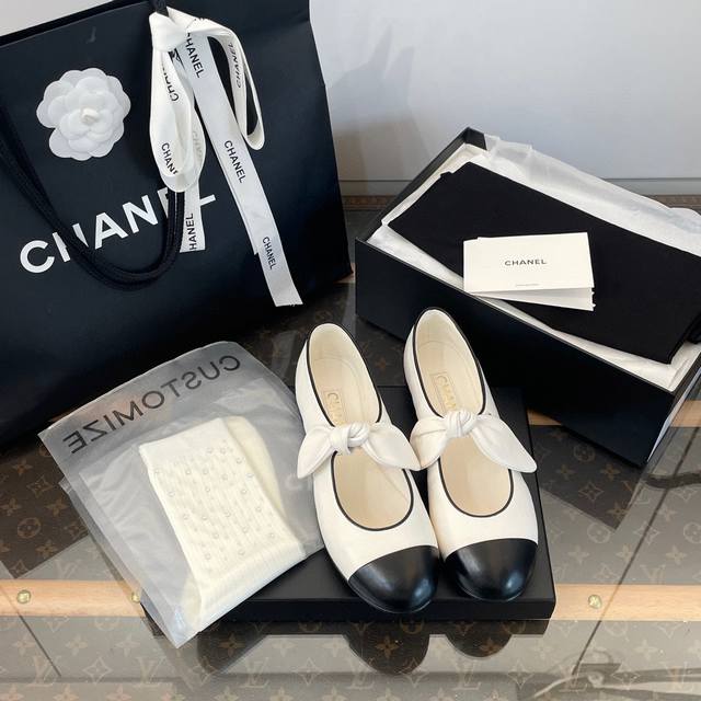Chanel-style flat Mary Jane shoes with bow. High-end quality from a Dongguan factory. Gentle and elegant off-white color. So chic! The little bow detail is adorable. Perfect for wearing barefoot or with mid-calf socks and long skirts or pants. Super stylish and sophisticated. Distinguished from common market shoes