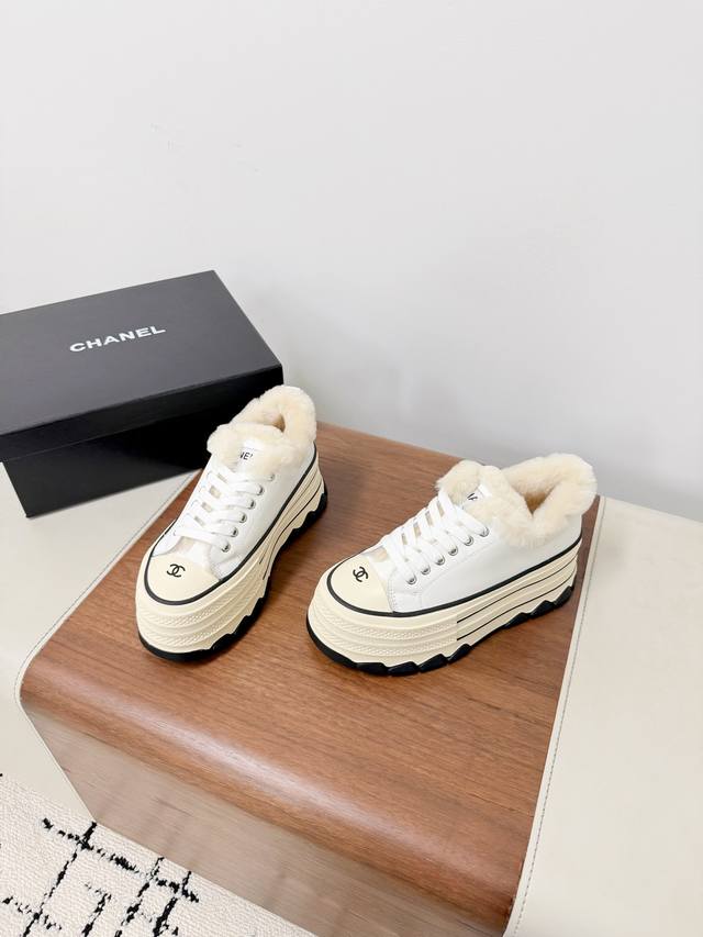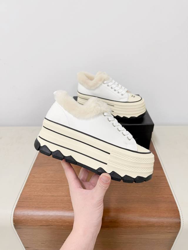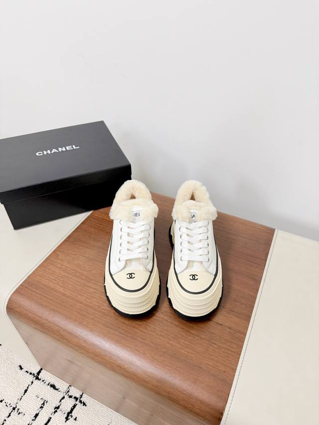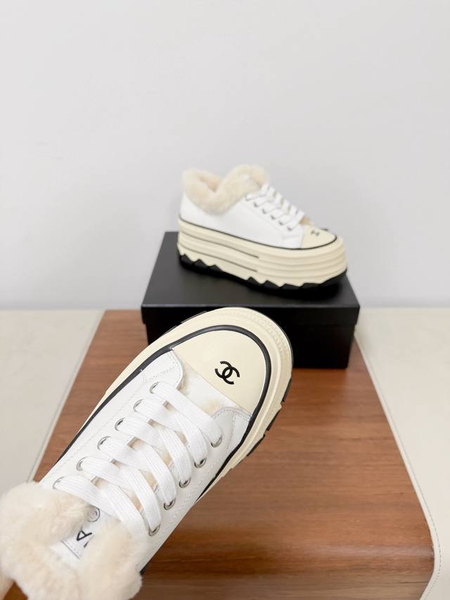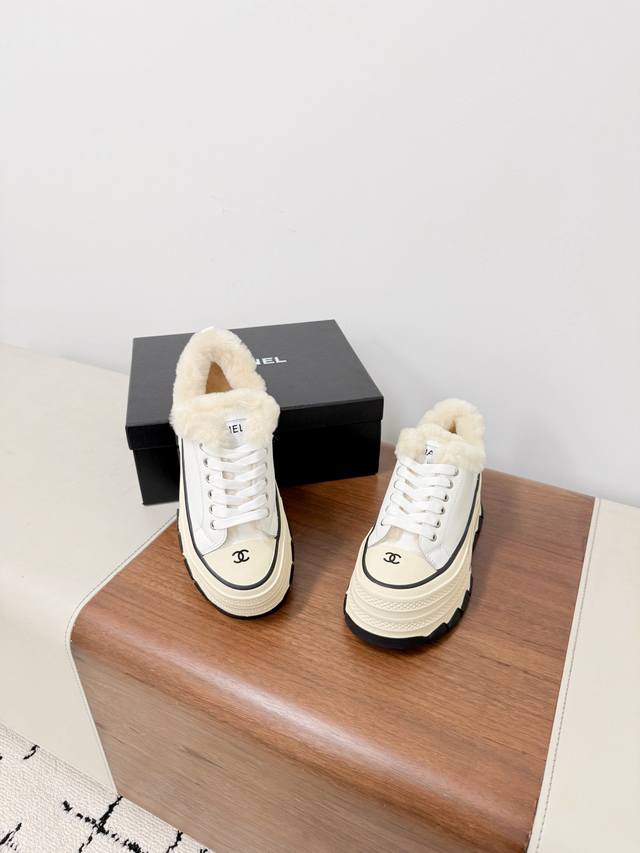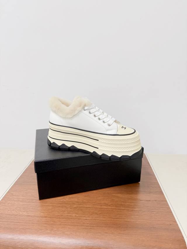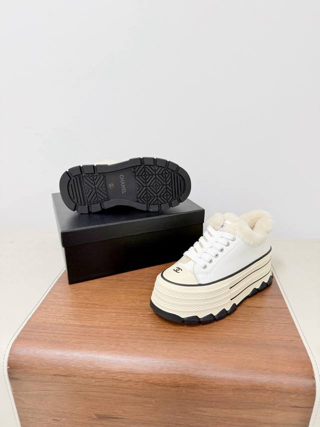 Chanel-style platform fuzzy biscuit shoes, a brand new retro canvas series, presenting a relaxed look and a light and airy feel to kick off your summer journey. DDD continues Ann Andelman's signature deconstructed silhouette, with a simple, three-dimensional line and double A logo on the upper. The breathable canvas upper provides a soft, comfortable feel, while the platform rubber sole features geometric textures and rubber trim details. The height-enhancing and leg-lengthening effect is comparable to leg surgery, making legs appear slimmer and longer. Easily styled with any look! DDD Upper material: Cowhide DDD Lining material: Genuine wool DDD Size: 35-40 DDD Extremely cost-effective factory release, price is firm. DDD