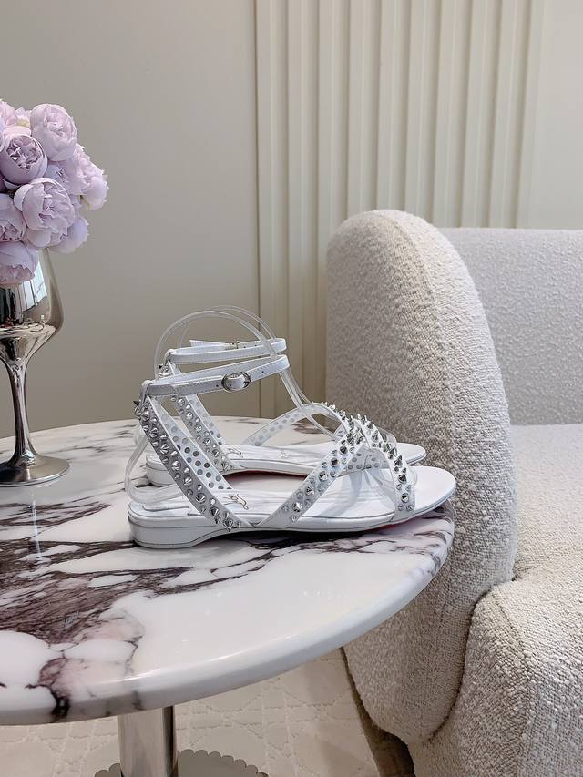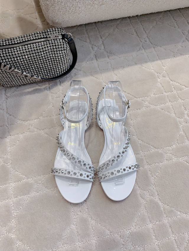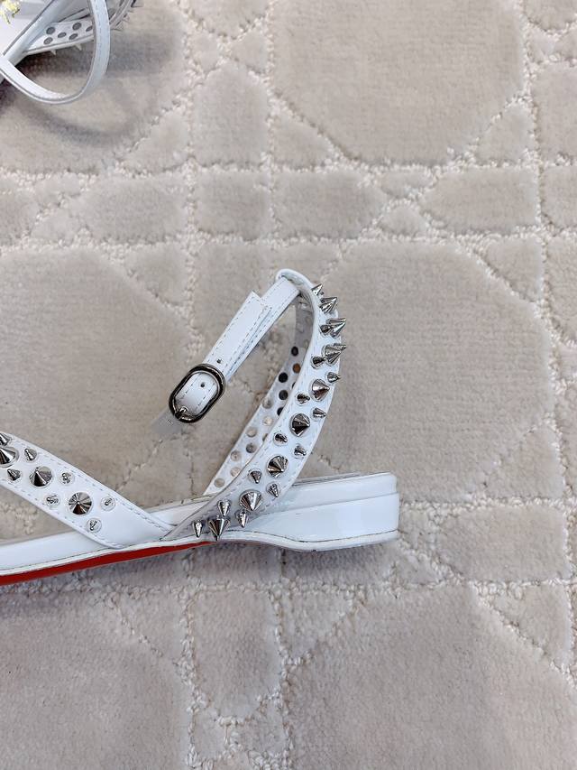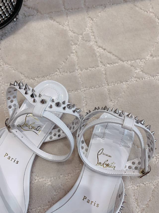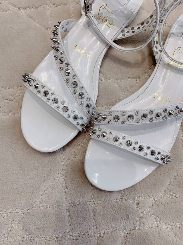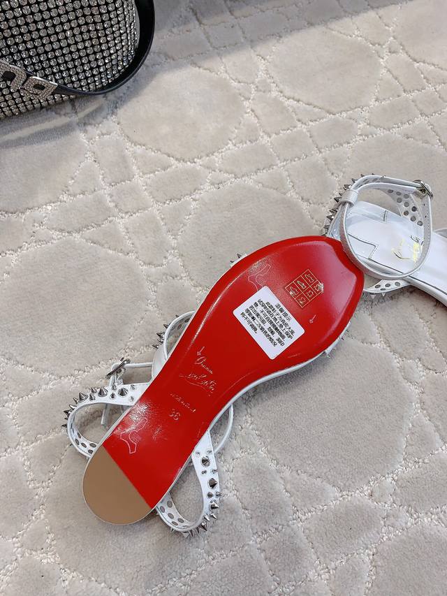 Christian Loubouti* New riveted red-soled high-heeled sandals exude a wild and sexy beauty. Smooth curves outline a graceful style and show off a sexy demeanor. A timeless classic
