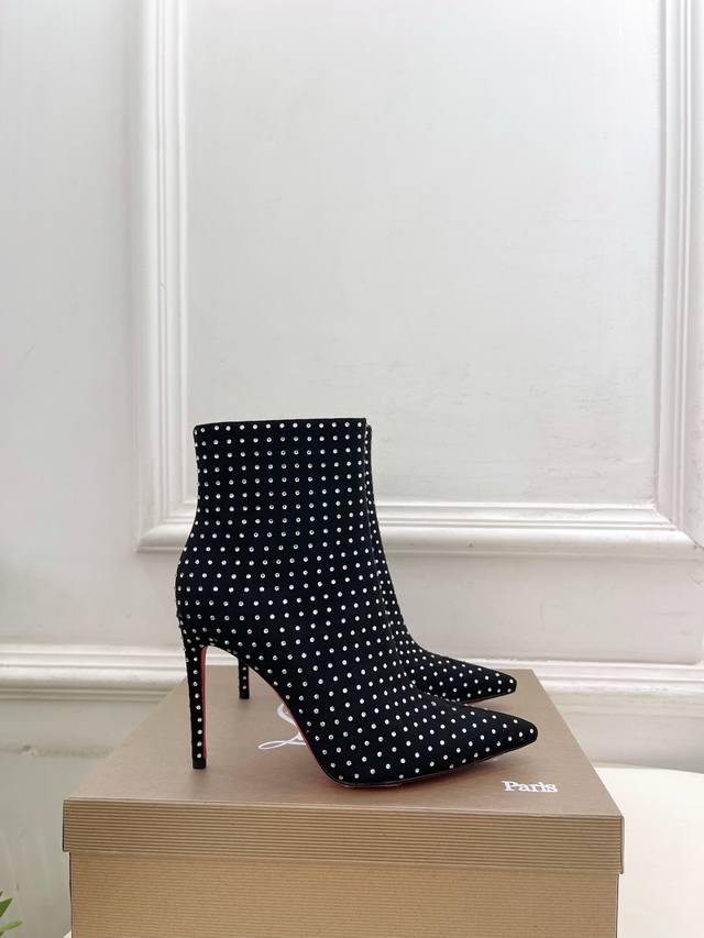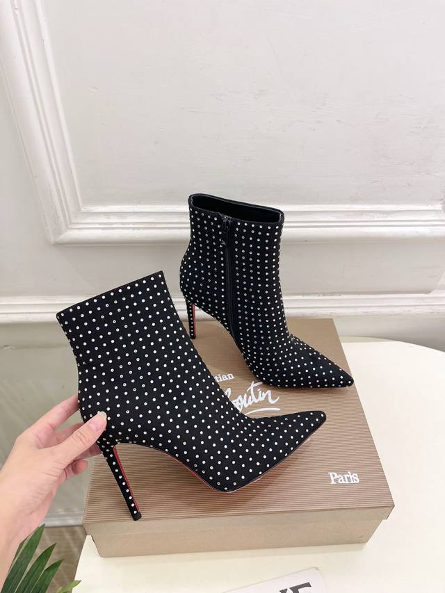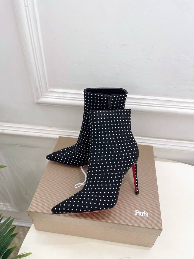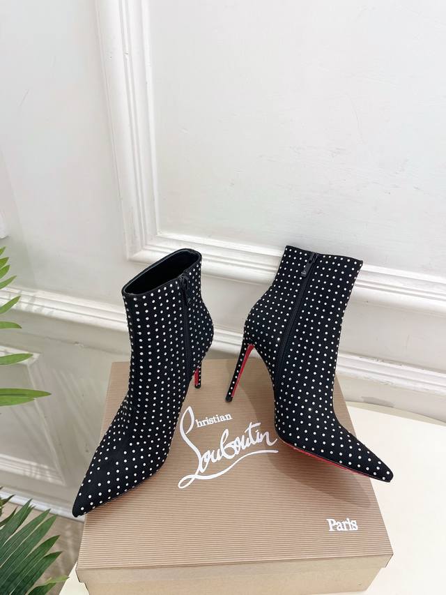 Christian Louboutin Cl Red Sole Shoes 25Ss Latest Cl Pointed Toe Side Zipper High-Heeled Ankle Boots Chelsea Boot Series, a glamorous and luxurious new arrival. Celebrity style, featured by platform anchors and influencers, showcasing fashionable elegance and sexy femininity. Ethereal and classic, noble and elegant. Material: Original custom cowhide patent leather. Lining: Imported sheepskin lining. Outsole: Original genuine leather outsole. Heel height: 10.5cm. Sizes: 35-39, 40, 41, 42, 43 can be customized. Factory price (pp): [Price not specified]