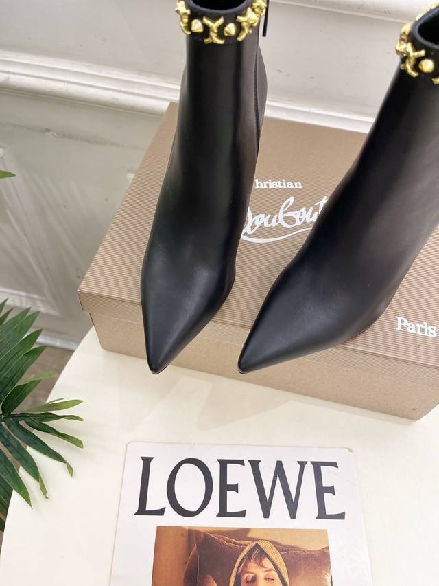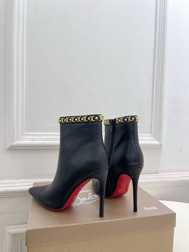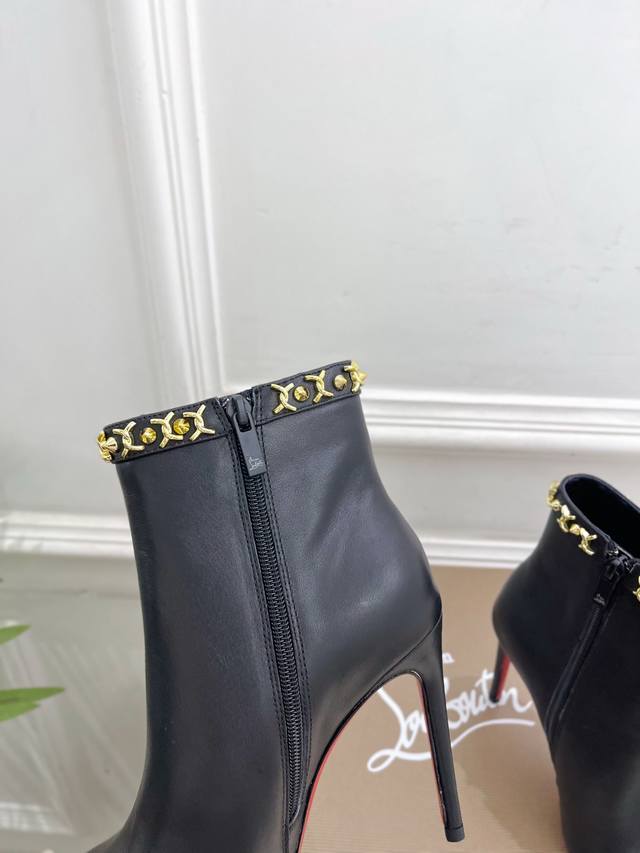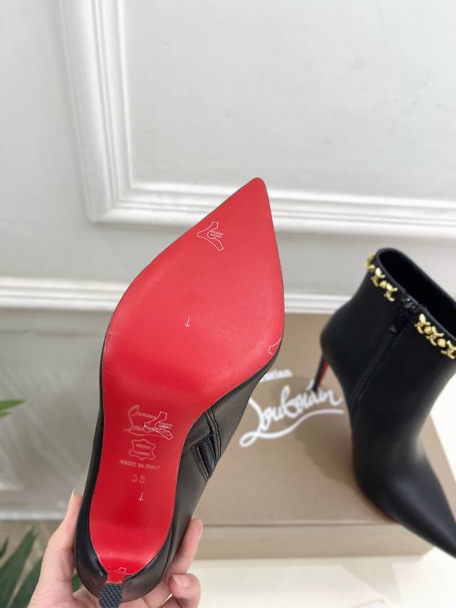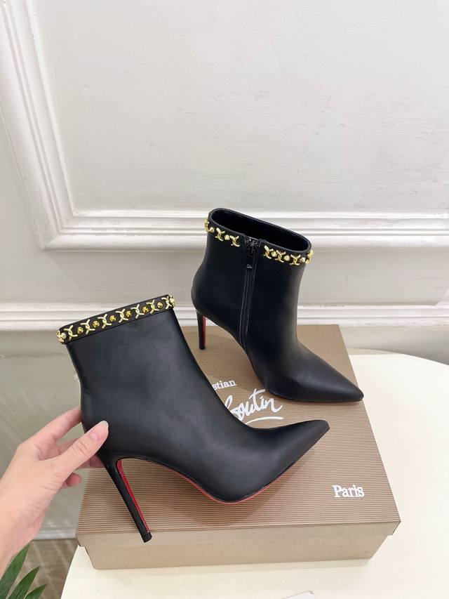 Christian Louboutin Cl Red Sole Shoes 25Ss Latest Cl Pointed Toe Side Zipper High-Heeled Ankle Boots Series, a glamorous and luxurious new arrival. Celebrity style, featured by platform anchors and influencers, showcasing fashionable elegance and sexy femininity. Ethereal and classic, noble and elegant. Material: Original custom cowhide. Lining: Imported sheepskin lining. Outsole: Original genuine leather outsole. Heel height: 10.5cm. Sizes: 35-39, 40, 41, 42, 43 can be customized. Factory price: Smooth surface with buckle 380.