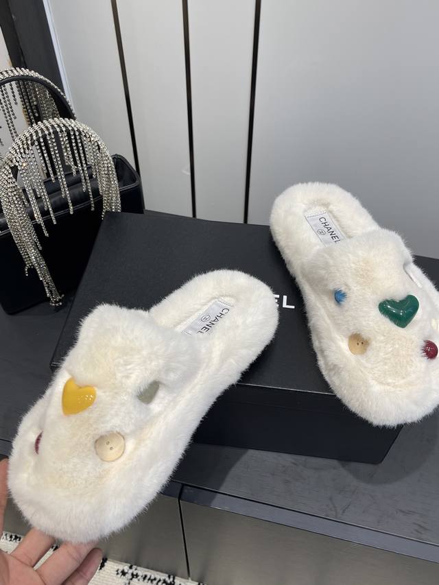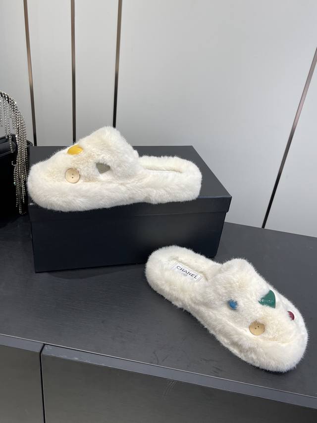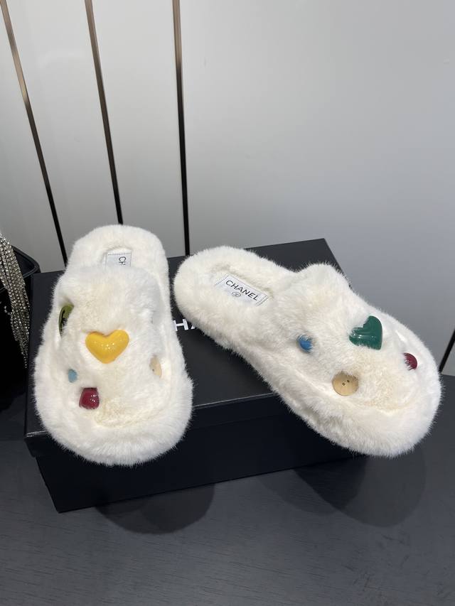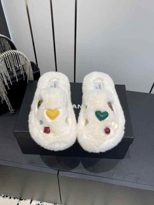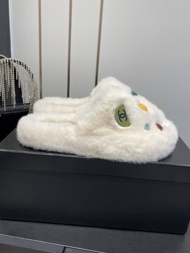 Classic All-Season Double C Furry Slippers. Soft and fluffy fur, comfortable and warm for autumn and winter. Pair with socks for a casual and relaxed look. They look really good and stylish on your feet. Made with imported eco-friendly woven plush fabric, the fabric is delicate, soft, and silky to the touch. Rubber outsole. Sizes 35-41 [40.41 custom-made]