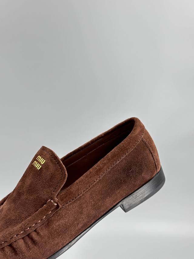 Miu Mi* * Spring/Summer 2025 New Suede Loafers Three Colors Miu Gold Foil Suede Series Creating a Hot Trend Celebrity Orders and Try-ons at Various Events Super Casual and Versatile You Won't Regret Buying It Zp Developed and Customized, Truly the Same Outsole