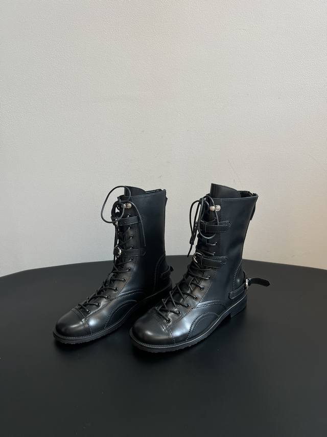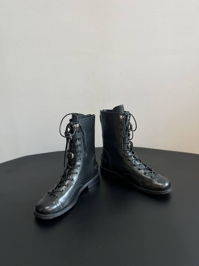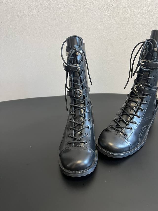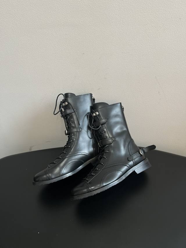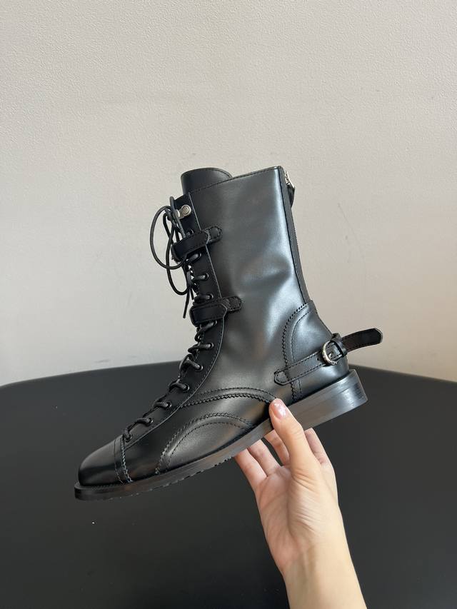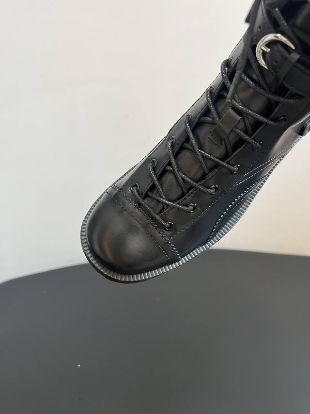 The shoe body adopts a lace-up design, decorated with metal buckles, adding elements of workwear and punk style, making the shoes more personalized; the toe is rounded, comfortable to wear and full of retro feel. The mid-calf boot shape can well modify the leg lines, and the zipper design on the side is easy to put on and take off, taking into account both beauty and practicality.