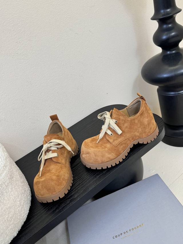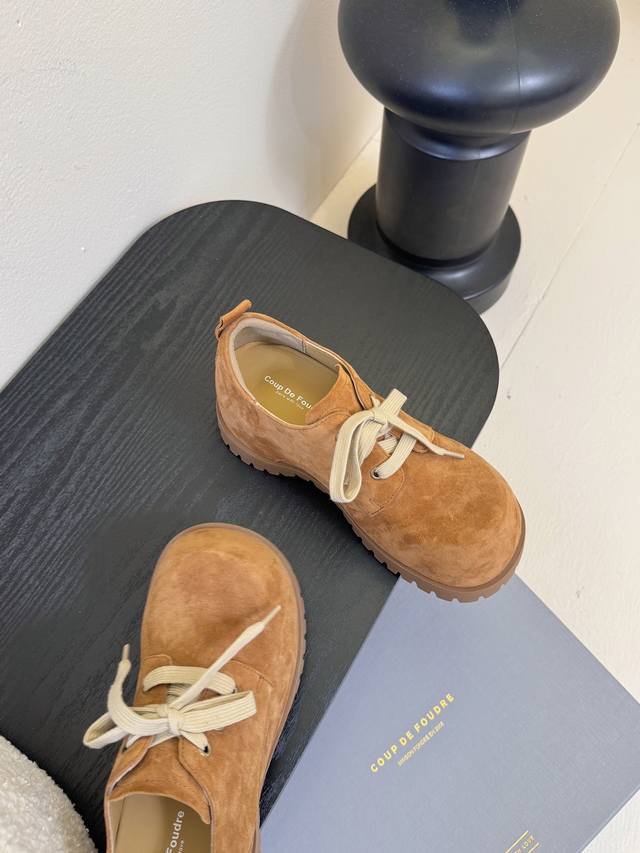 Coup De Foudre classic, stylish, and simple chimney boots. Versatile, genuine leather heeled short boots in yellow.