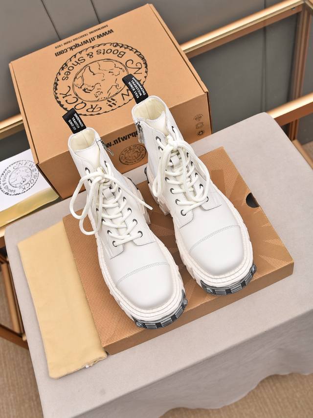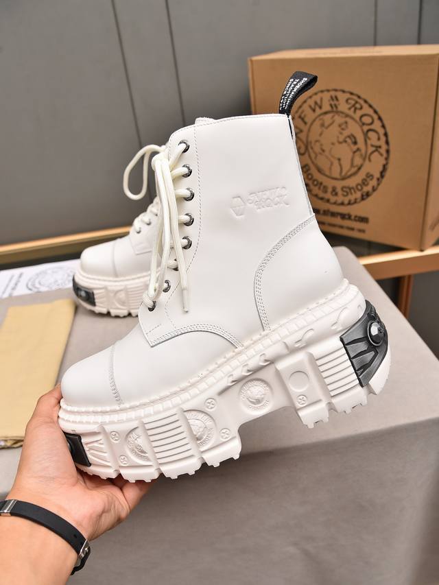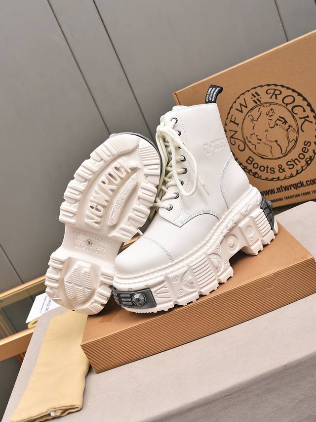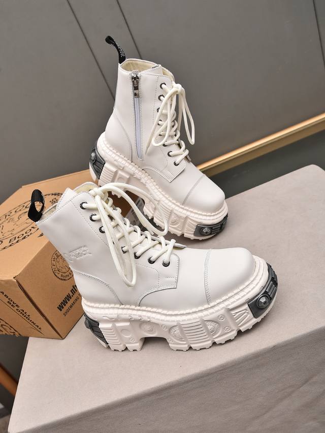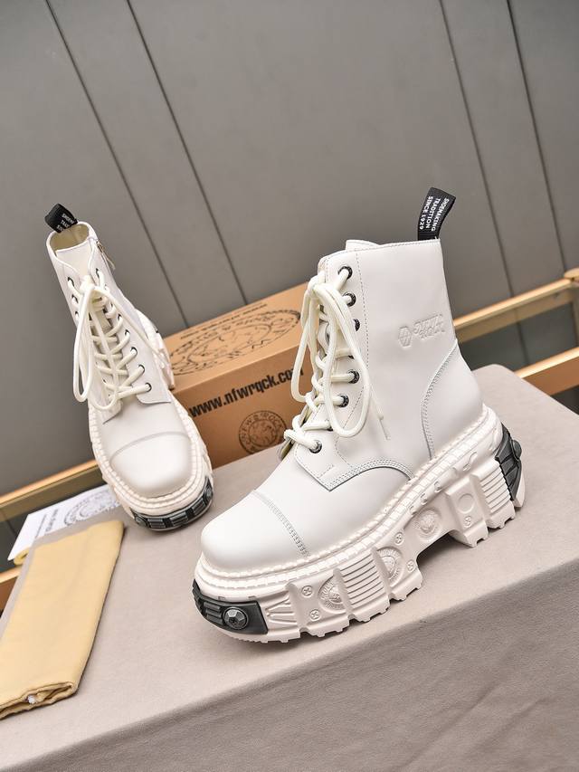 Couple's Newrock. Dark Punk Martin Rock Tank Mecha Hardcore Battle Shoes Ddd Newrock. A century-old Spanish high-end footwear brand, Newrock's unique hardcore design has entered the public eye. Using tank elements as the sole design, it subverts conventions, breaks the monotony, brightens the overall look, and attracts attention, achieving a fearless style. Ddd's hardcore design, enhanced by metal accessories, embodies an untamed punk spirit, interpreting a unique and iconic style. It demonstrates its pioneering leadership in the platform shoe field and is a darling of major fashion weeks. Ddd's ultra-lightweight foam outsole solves the problem of bulkiness; those who know their stuff can buy it without hesitation. Ddd's upper is made of top-grain waxed calfskin. Ddd's lining is made of top-grain cowhide. Ddd's original foam combination outsole and 8cm heel height make it super lightweight. Ddd Sizes: 35-39, 40 (custom orders, no returns or exchanges); Ddd Sizes: 39-44, 38, 45 (custom orders, no returns or exchanges); Ddd Full retail packaging.