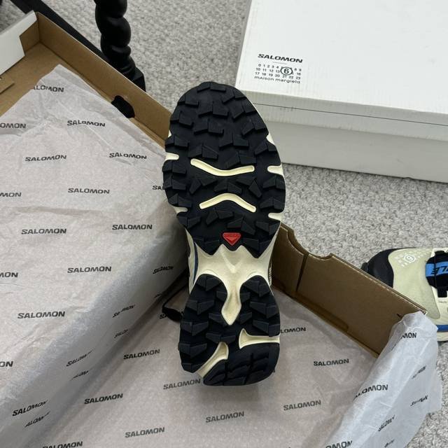 Couple's pair. Salomon and Margiela collaborate on the X-Alp series, a couple's outdoor casual sneaker. This reimagined X-Alp, a reimagined take on the Mm6, focuses on its aerodynamic design, with signature white and cream colors evoking an urban aesthetic. The Mm6 logo on the tongue, like a handmade stamp, complements Salomon's bold, high-tech logo. Another pair, crafted in pure black, highlights the rich, textured details. This iconic sneaker is refined into a new urban classic, bringing a tranquil touch to Salomon. Delivered in exquisite packaging. Fabric: Original imported cowhide leather with breathable mesh. Lining: Original imported breathable mesh. Sole: Original molded, non-slip rubber outsole. Sole thickness: 4cm. Sizes: Women's 35-40, Men's 39-45.
