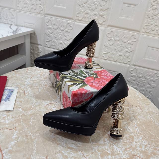Dg. Top-tier version. High-quality DDD 2025 Exclusive New Waterproof Platform Pearl Heel Shoes DDD Upper: Cowhide DDD Lining: Sheepskin DDD Heel Height: 1.5cm platform, 12cm heel DDD Outsole: Grade A original black genuine leather outsole DDD Sizes: 34